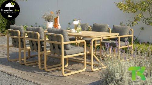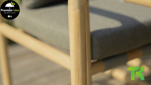 Less is more, within the Dolce Lounge and Dining series, the garden furniture is minimalist but with a rural design, focusing on functional simplicity and graceful round shapes. The round shapes keep this design perfectly balanced. The seat and backrest are made of Belt weave for excellent support and a playful look. The resilient Belt weave and thick cushions create extraordinary seating comfort! The cushions come in the color Slate Grey and feature the well-known Bee Wett® technology. The cushions have an Olefin cover that can be unzipped and washed at 30 degrees Celsius. This fabric is highly weather-resistant and durable.