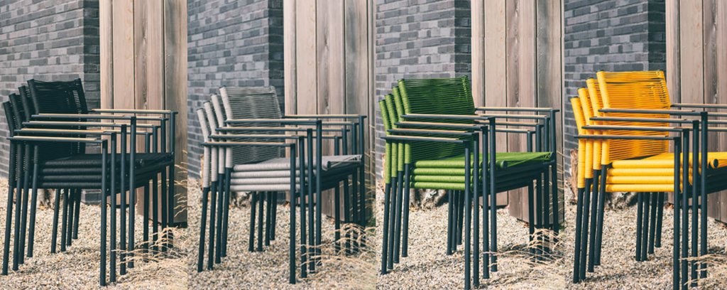 The rope wires provide a delightful comfort, so seat cushions are not necessary! Due to the combination of high-quality outdoor materials, this garden set is weatherproof and easy to maintain. The Jakarta dining has 2 table variants: round and square. The Apple Bee Jakarta dining chair is available in 4 different color variants: Lemon, Black, Grey, Olive.