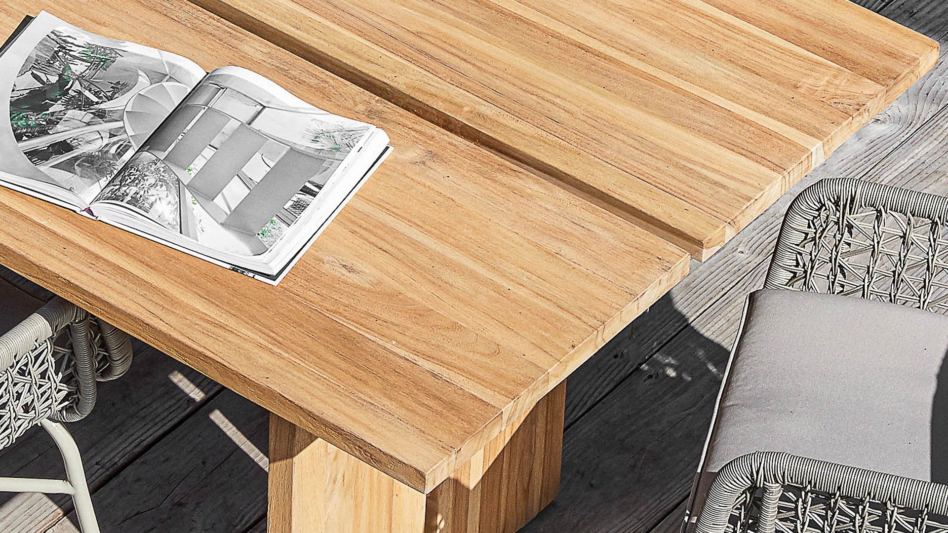 The Joie de Vivre garden table is available in 2 lengths: 250cm and 200cm. The table is made of thick certified teak wood.