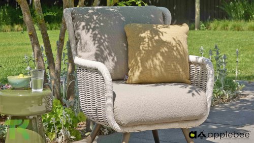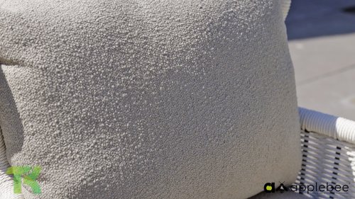 The cushions feature a bouclé fabric in a warm taupe. This fabric feels soft to the touch, allowing you to sit comfortably for hours. Thanks to the unique Bee Wett® technology, you don't have to worry about a summer shower. The cushions are weatherproof, quickly wick away water, and dry in no time, without compromising on comfort.