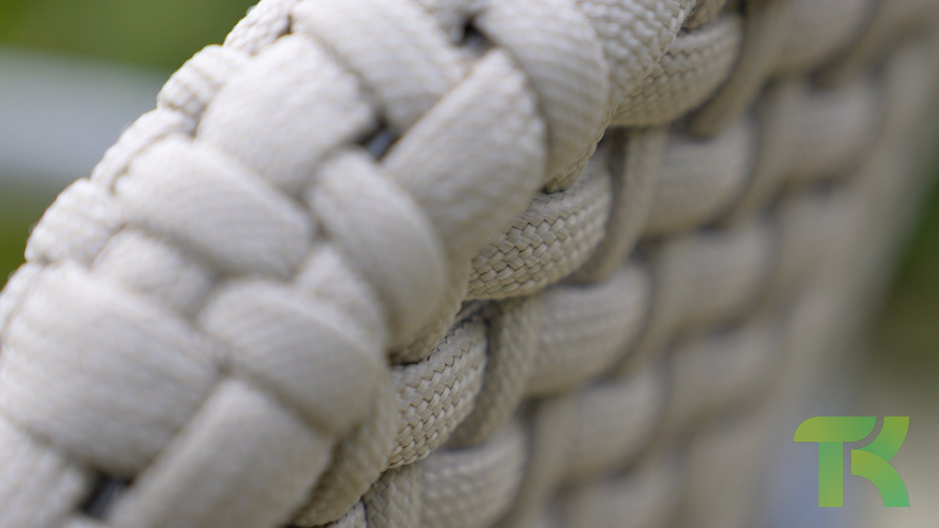 This beautiful material is perfect for outdoor use, because Taste Rope isn't just any shoelace. Taste uses very high-quality rope made from 100% SDP (Solution Dyed Polypropylene). This material is extremely strong and has a very low stretch. Polypropylene is oil-based, so dirt and contaminants are virtually insoluble, just like our cushions. Taste offers exclusive designs using hand-woven rope patterns and techniques.
