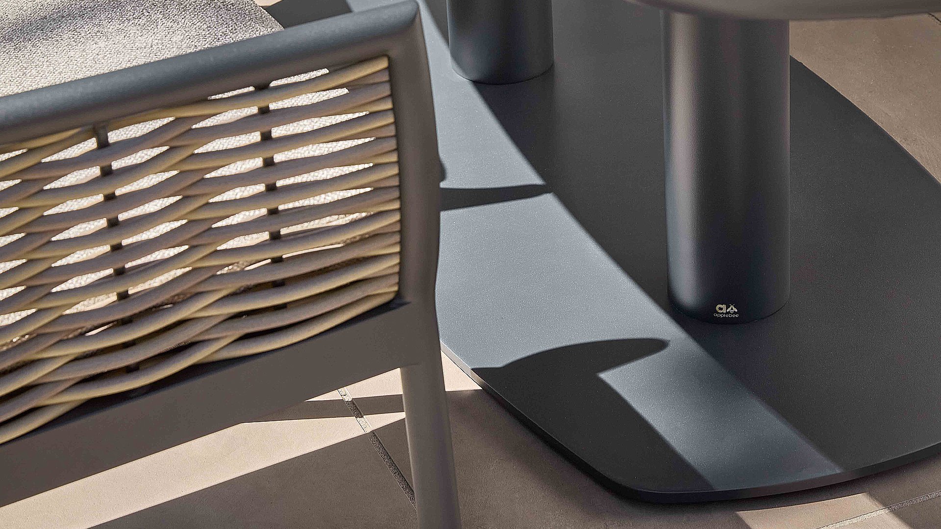 The Melville dining table by Apple Bee is the ultimate masterpiece for the garden or patio. The true eye-catcher is the top, crafted from state-of-the-art Sintered Stone. This innovative material is not only beautiful to look at but also offers ultimate functionality: it is exceptionally scratch, stain, and heat resistant, ideal for intensive use and carefree outdoor living. This premium design is built on a sleek yet extremely stable powder-coated aluminum base.