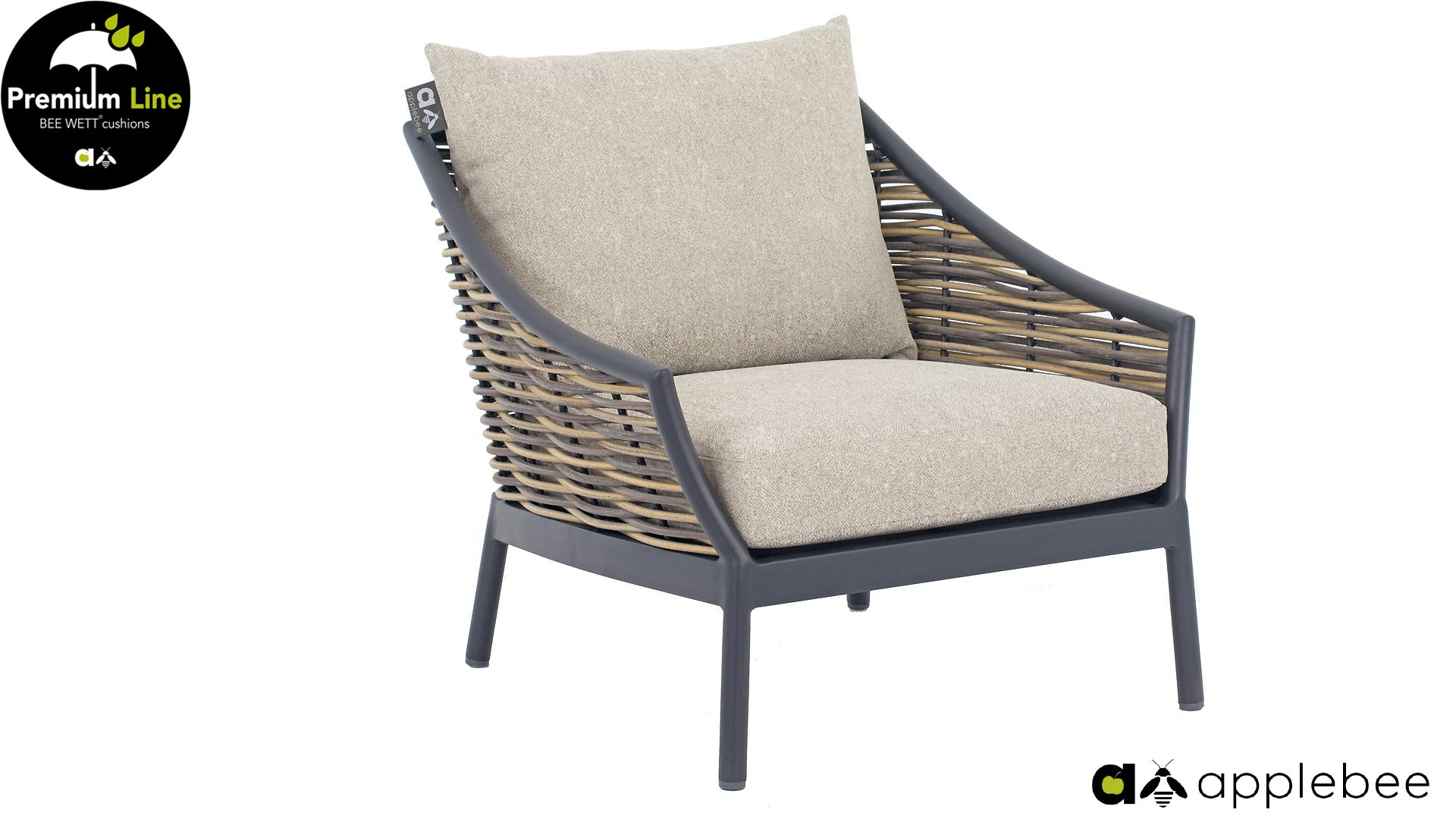 Apple Bee is characterized by the use of special Biculair® wickerwork, originally developed for professional applications in the hospitality industry. This Biculair® wickerwork is a lifelike, sustainable alternative to rattan. This highly durable synthetic rattan fiber (HDPE) is completely weatherproof, colorfast, recyclable, and therefore an environmentally friendly choice. The appearance and performance of the furniture remain unaffected by European weather conditions, and the colors retain their natural vibrancy. The superior quality of this wickerwork, verified by the Netherlands Organisation for Applied Scientific Research (TNO), is clearly demonstrated compared to other comparable materials.