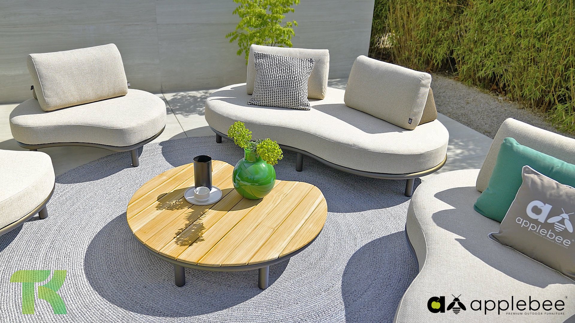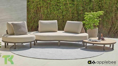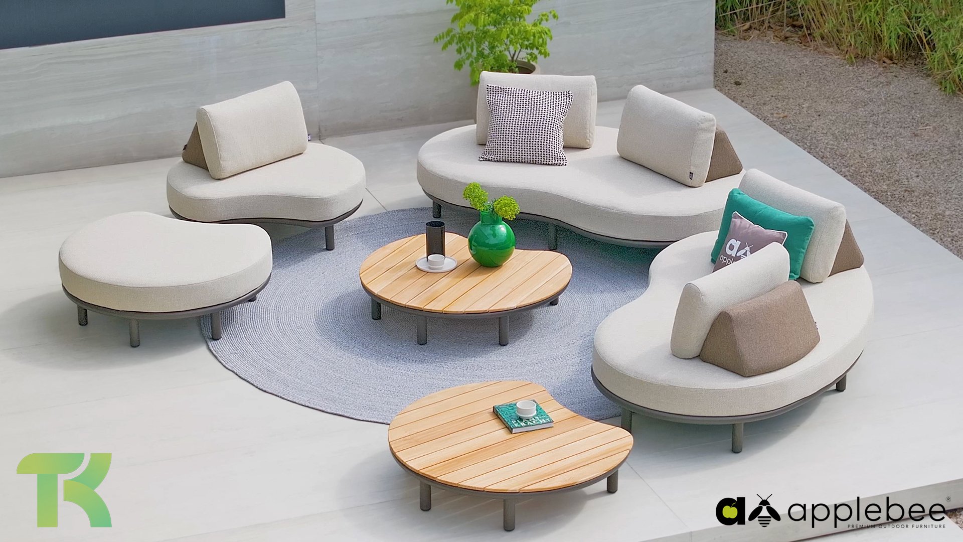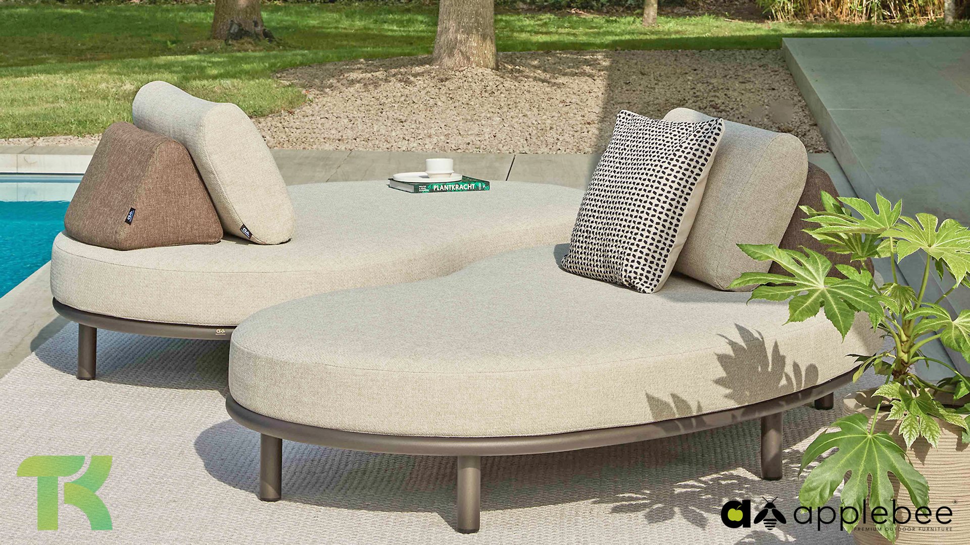 The sleek frame is crafted from high-quality, powder-coated aluminum in the warm, chic Bronze color. A color that harmonizes perfectly with the natural tones of your garden. The cushions are in Cotton Flower, a soft, natural shade that exudes tranquility and combines beautifully with the bronze and brown accents. The upholstery is made of olefin with Apple Bee's renowned BeeWett® technology. This makes them not only extremely soft and colorfast, but also weather-resistant. After a rain shower, the cushions dry again in no time thanks to the unique drainage structure.
