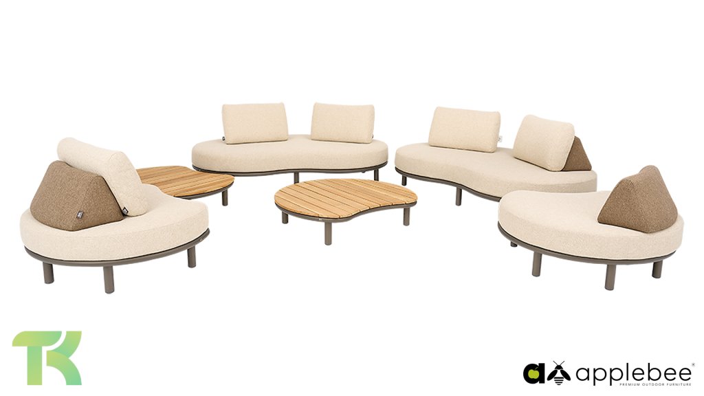 The sleek frame is crafted from high-quality, powder-coated aluminum in the warm, chic Bronze color. A color that harmonizes perfectly with the natural tones of your garden. The cushions are in Cotton Flower, a soft, natural shade that exudes tranquility and combines beautifully with the bronze and brown accents. The upholstery is made of olefin with Apple Bee's renowned BeeWett technology. This makes them not only extremely soft and colorfast, but also weather-resistant. After a rain shower, the cushions dry in no time thanks to their unique drainage structure. Experience the comfort of the future and give your garden the upgrade it deserves.