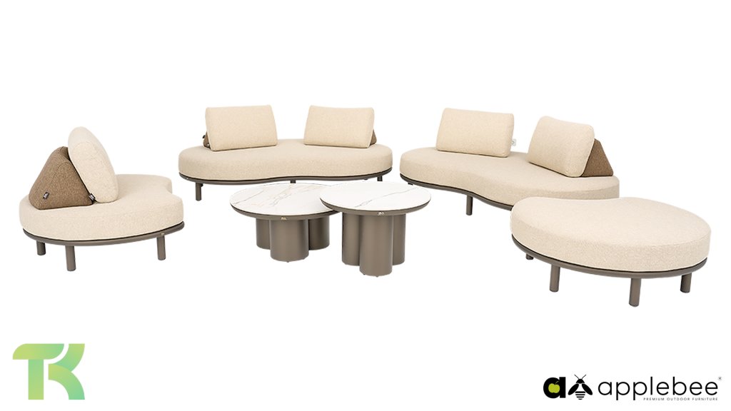 The sleek frame is crafted from high-quality, powder-coated aluminum in the warm, chic Bronze color. A color that harmonizes perfectly with the natural tones of your garden. The cushions are in Cotton Flower, a soft, natural shade that exudes tranquility and combines beautifully with the bronze and brown accents. The upholstery is made of olefin with Apple Bee's renowned BeeWett technology. This makes them not only extremely soft and colorfast, but also weather-resistant. After a rain shower, the cushions dry in no time thanks to their unique drainage structure. Experience the comfort of the future and give your garden the upgrade it deserves.