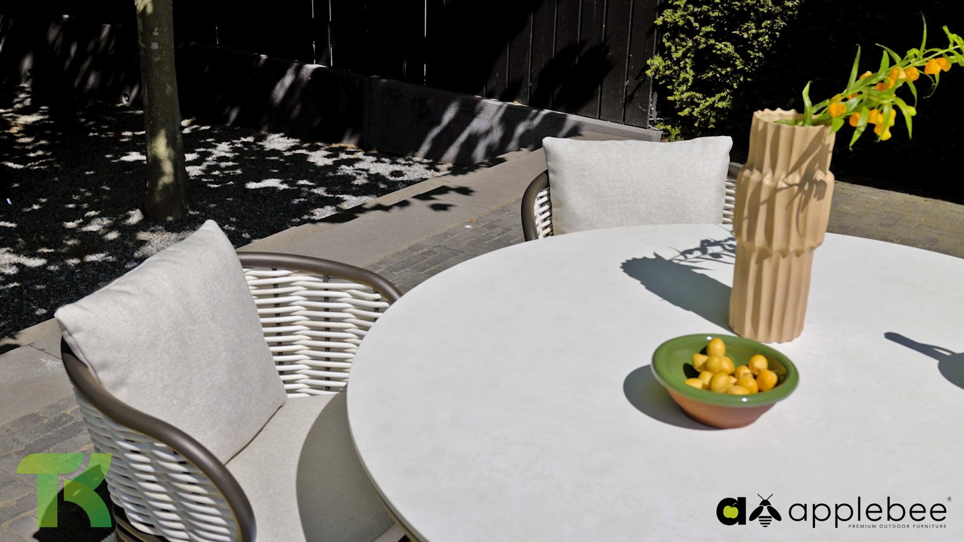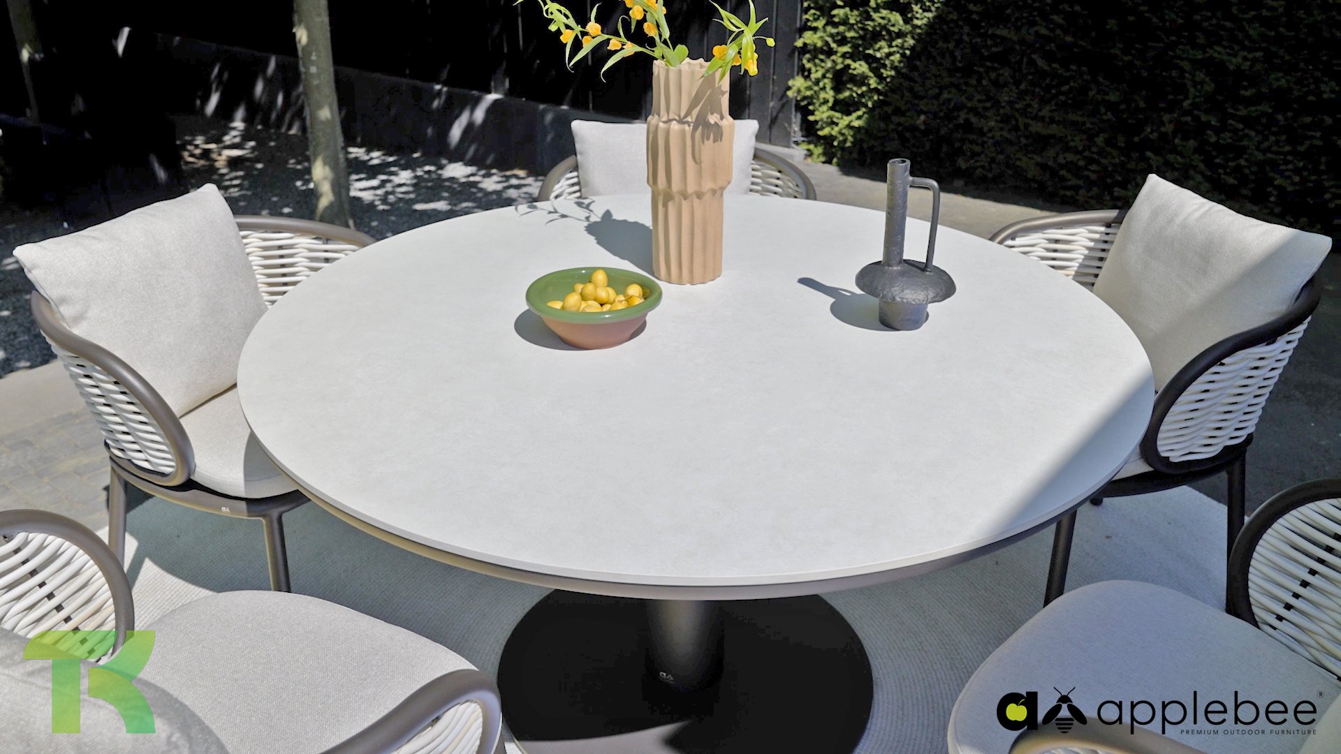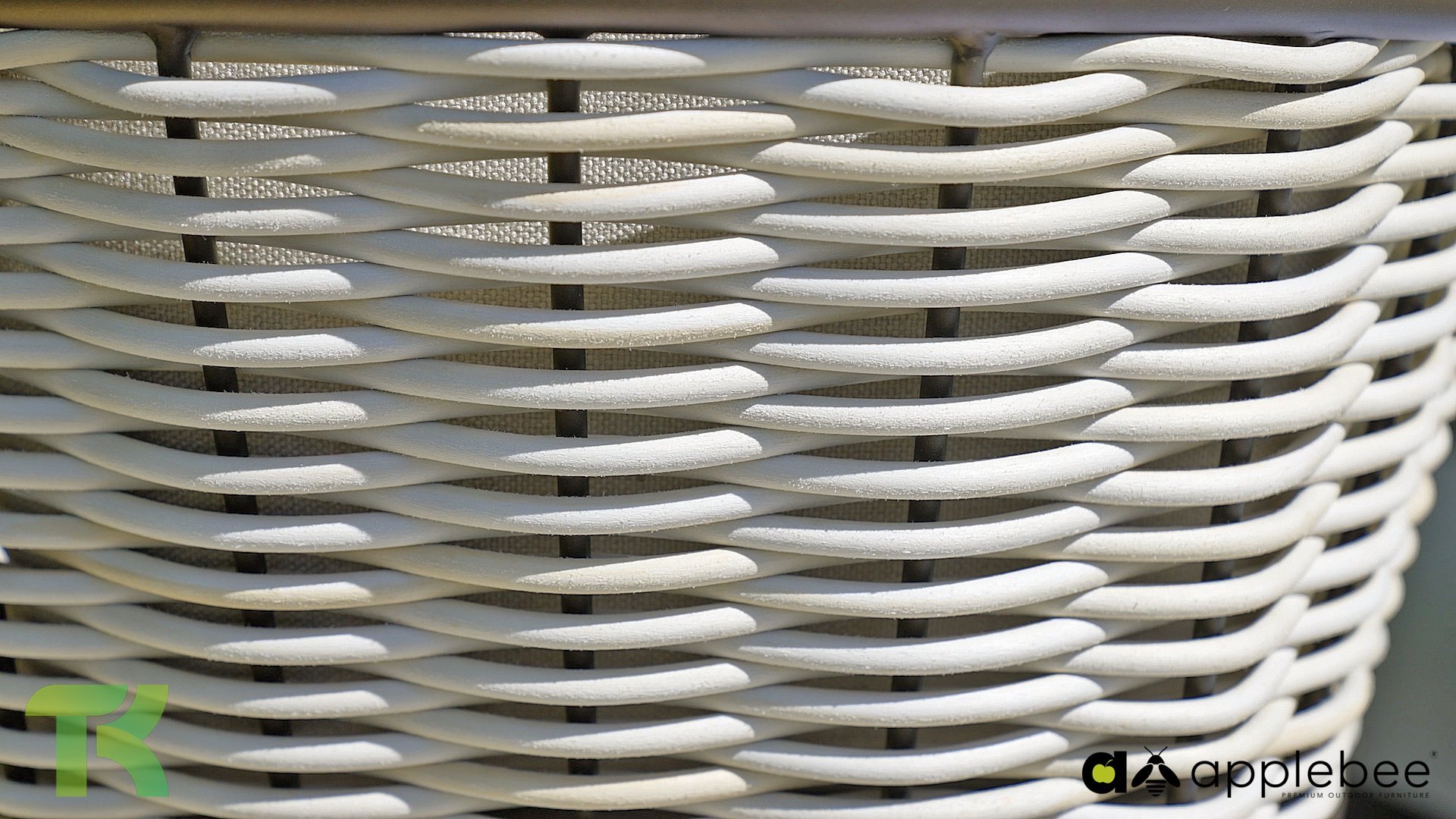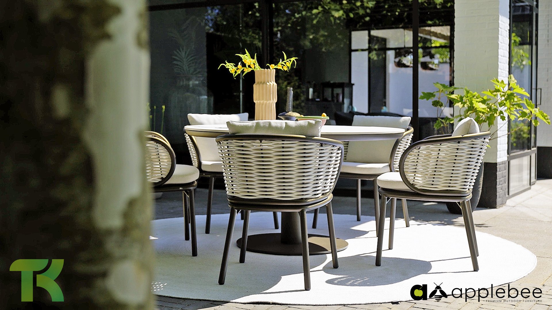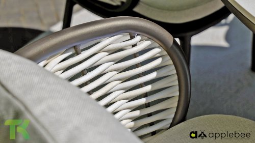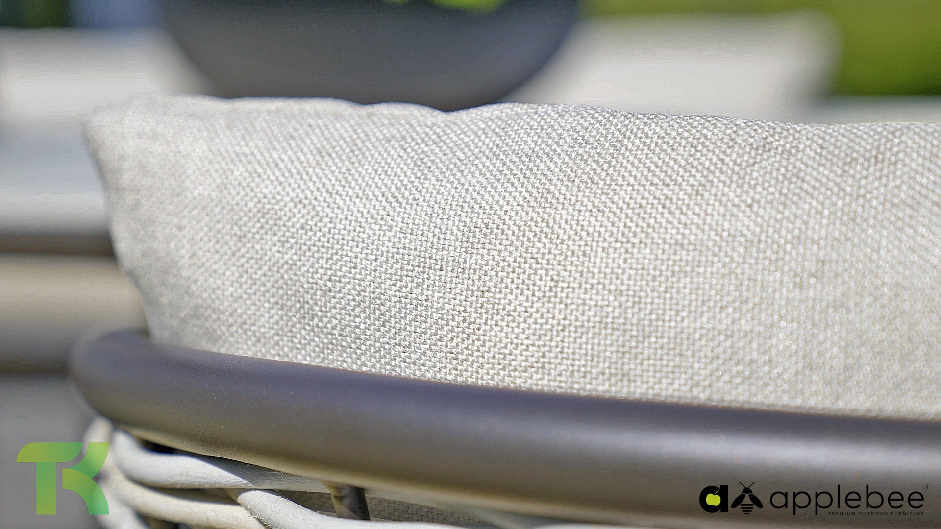 The backrest is artfully woven with thick, rope-like threads that give the chair a unique and open character. To complete the seating comfort, the chair is equipped with luxury cushions in the natural color Nature. Thanks to the unique BeeWett® technology, you don't have to worry about a rain shower; the cushions are weather-resistant and dry extremely quickly.