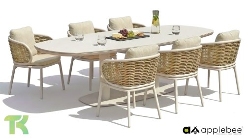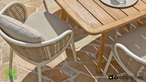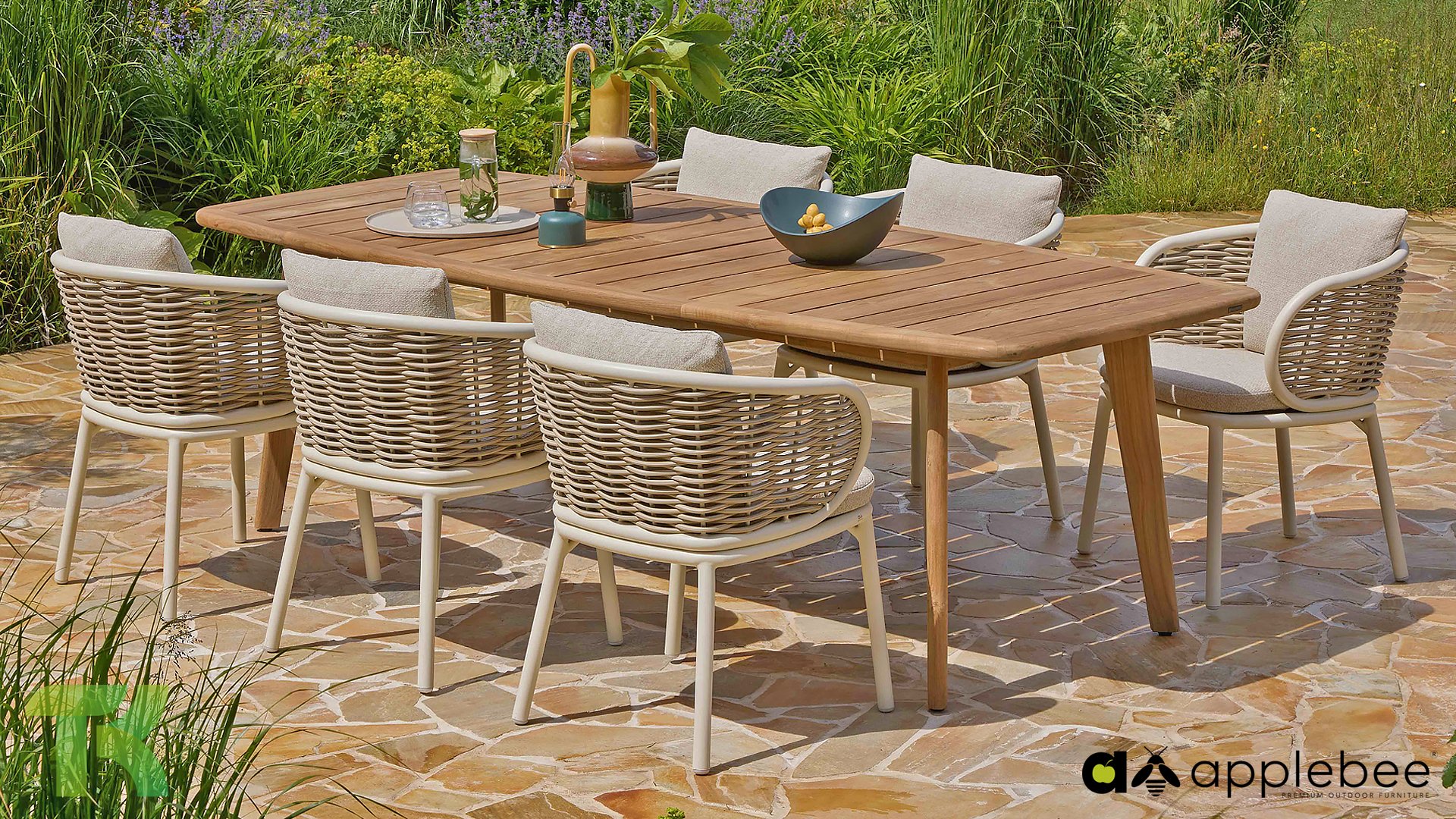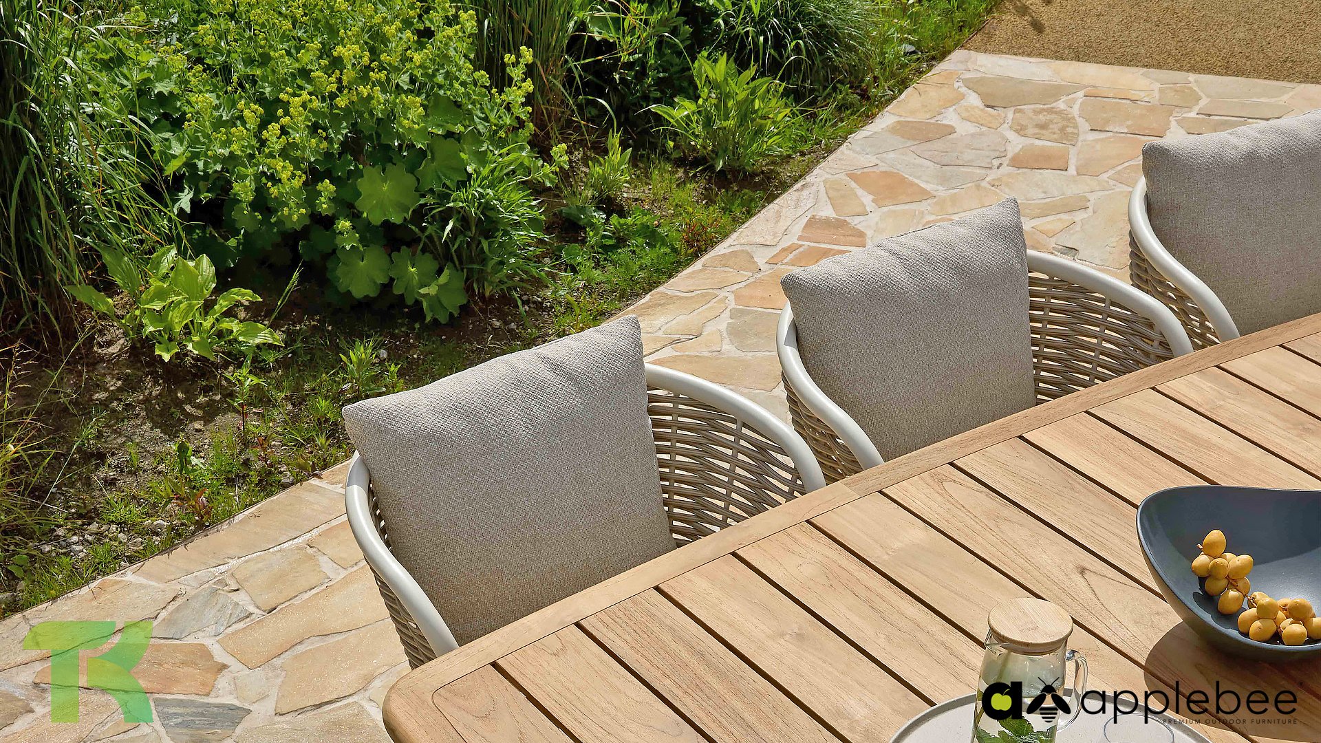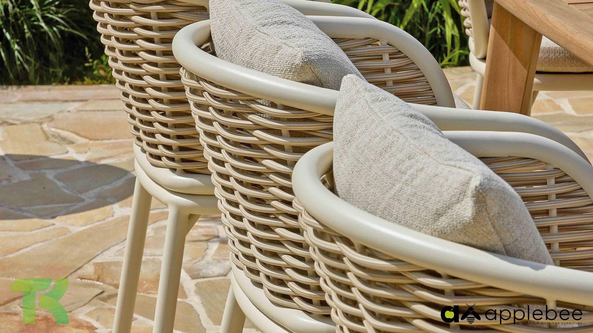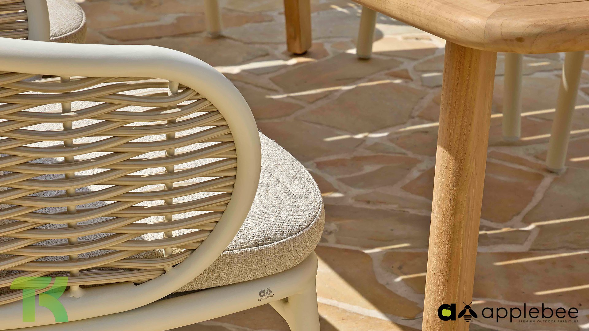 It's not just about aesthetics; comfort has also been considered. The chair invites you to dine for hours thanks to its comfortable cushions in the soft Cotton Flower color. Naturally, this version also features Apple Bee's smart BeeWett® technology. This allows the cushions to quickly wick away moisture, preventing mold and mildew.