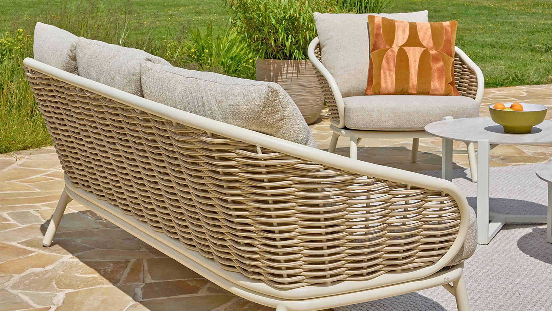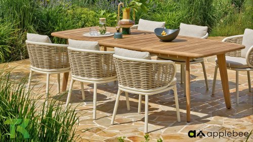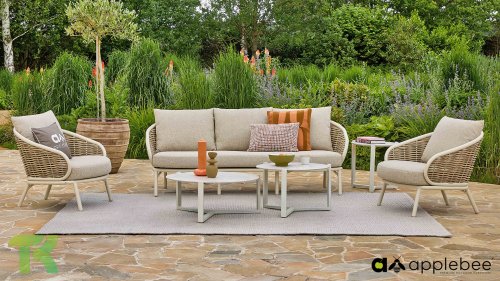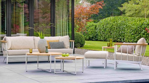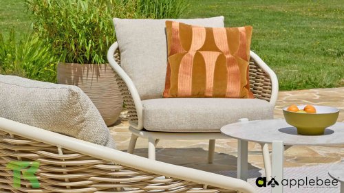 - Weatherproof: Includes luxurious BeeWett® cushions in Cotton Flower (moisture-regulating and quick-drying).