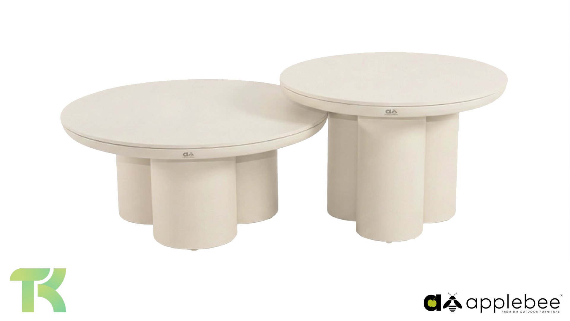 Discover the Apple Bee Tonga coffee table set, the perfect combination of a robust look and modern luxury. This set, consisting of two tables (Ø80x36cm and Ø60x44cm), adds depth and dynamism to any lounge area. The high-quality Sintered Stone tops are not only beautiful but also durable, scratch-resistant, and weather-resistant. The tables rest on a solid powder-coated aluminum base.