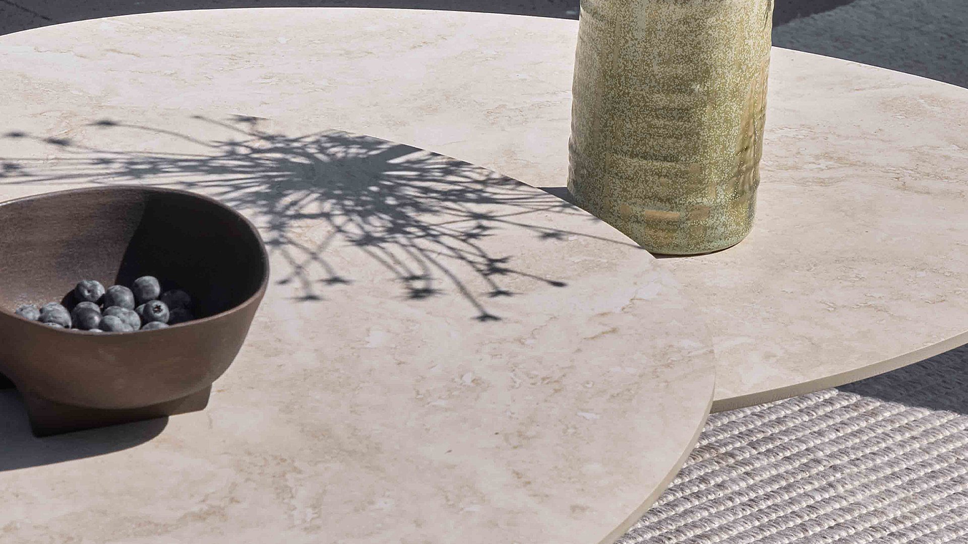 The durable Sintered Stone Cream tabletops create a marble-like look that is both scratch- and weather-resistant. The sleek, powder-coated aluminum base is available in Oyster and Bronze and pairs perfectly with the matching Pine Key lounge set. Create a refined, flexible, and luxurious atmosphere in your garden!