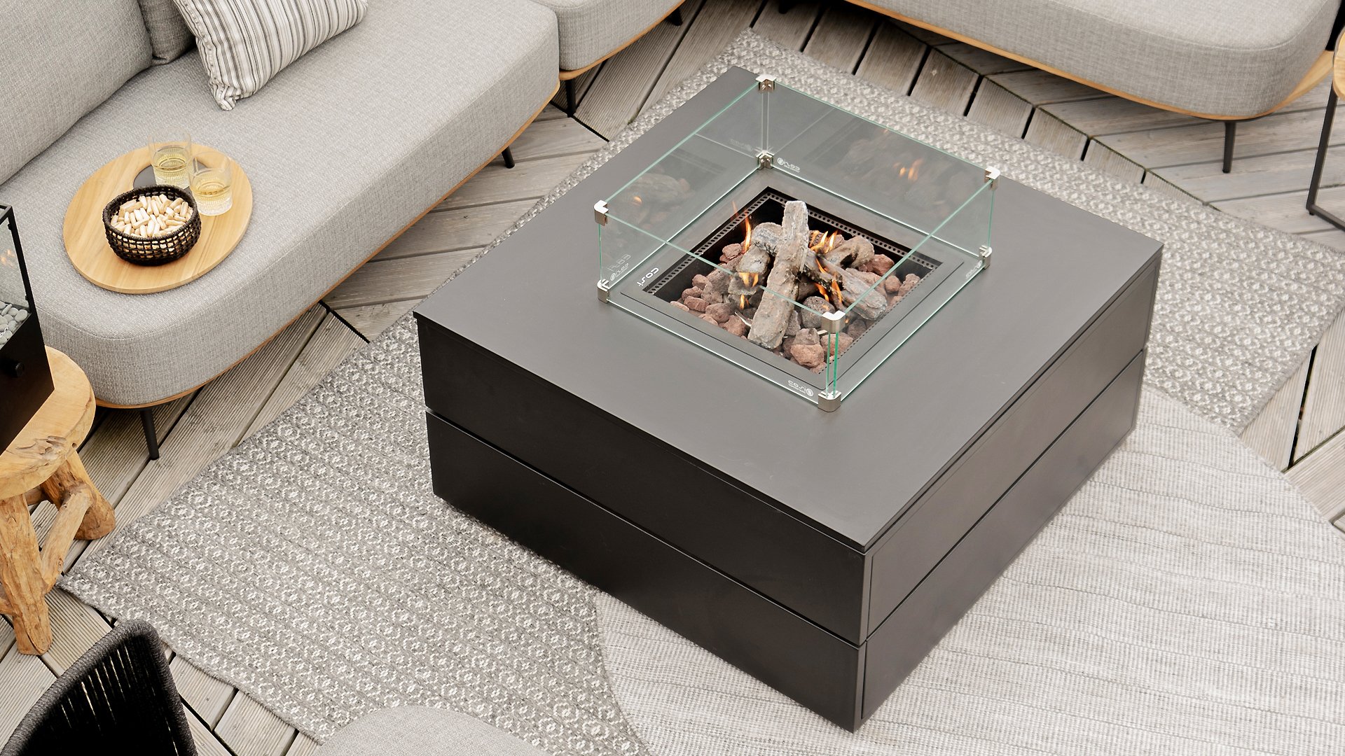 Despite its attractive lounge table height, the Cosipure can even accommodate a 5 kg gas bottle. This is well integrated into the pure design of the Cosipure table. Each Cosipure comes with a cover plate for the burner. If you’re not using the fire, you can still utilize the entire tabletop surface. Enjoy your time with family and friends! A beautiful lounge table that you can completely customize to your taste. This new collection from Cosi is an evolution in fire tables. The Cosipure has a beautiful aluminum frame with a natural teak tabletop.