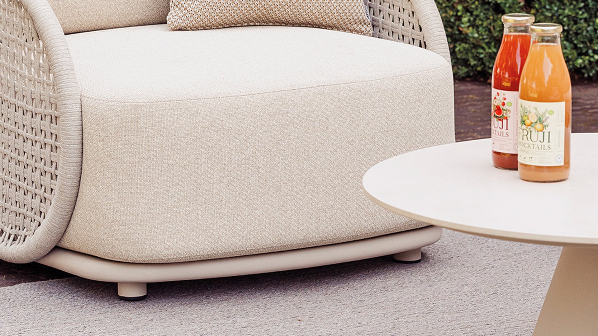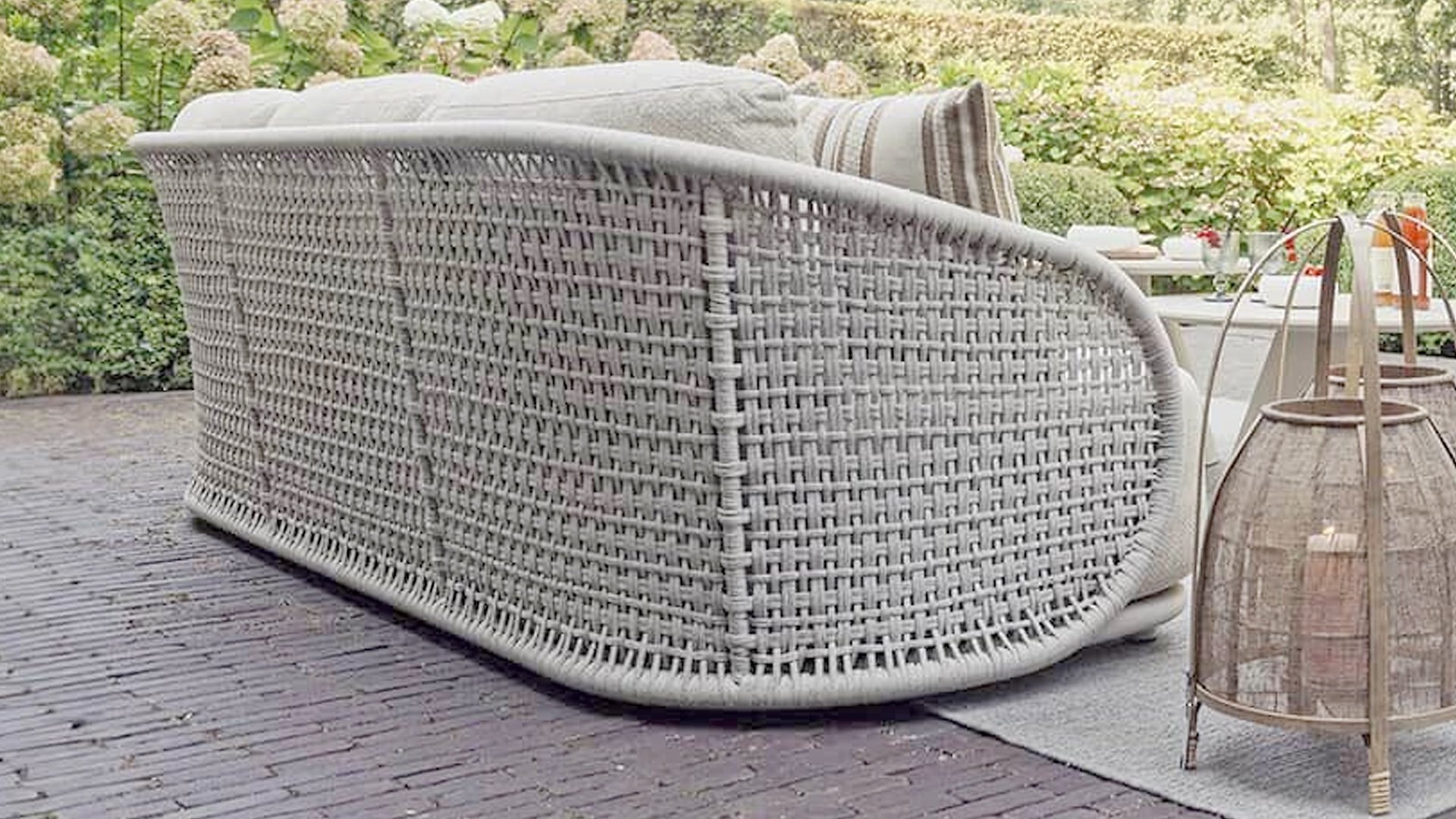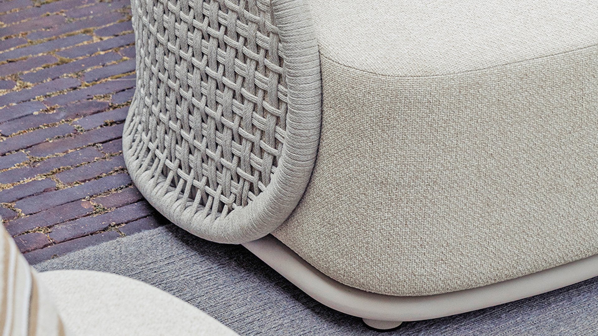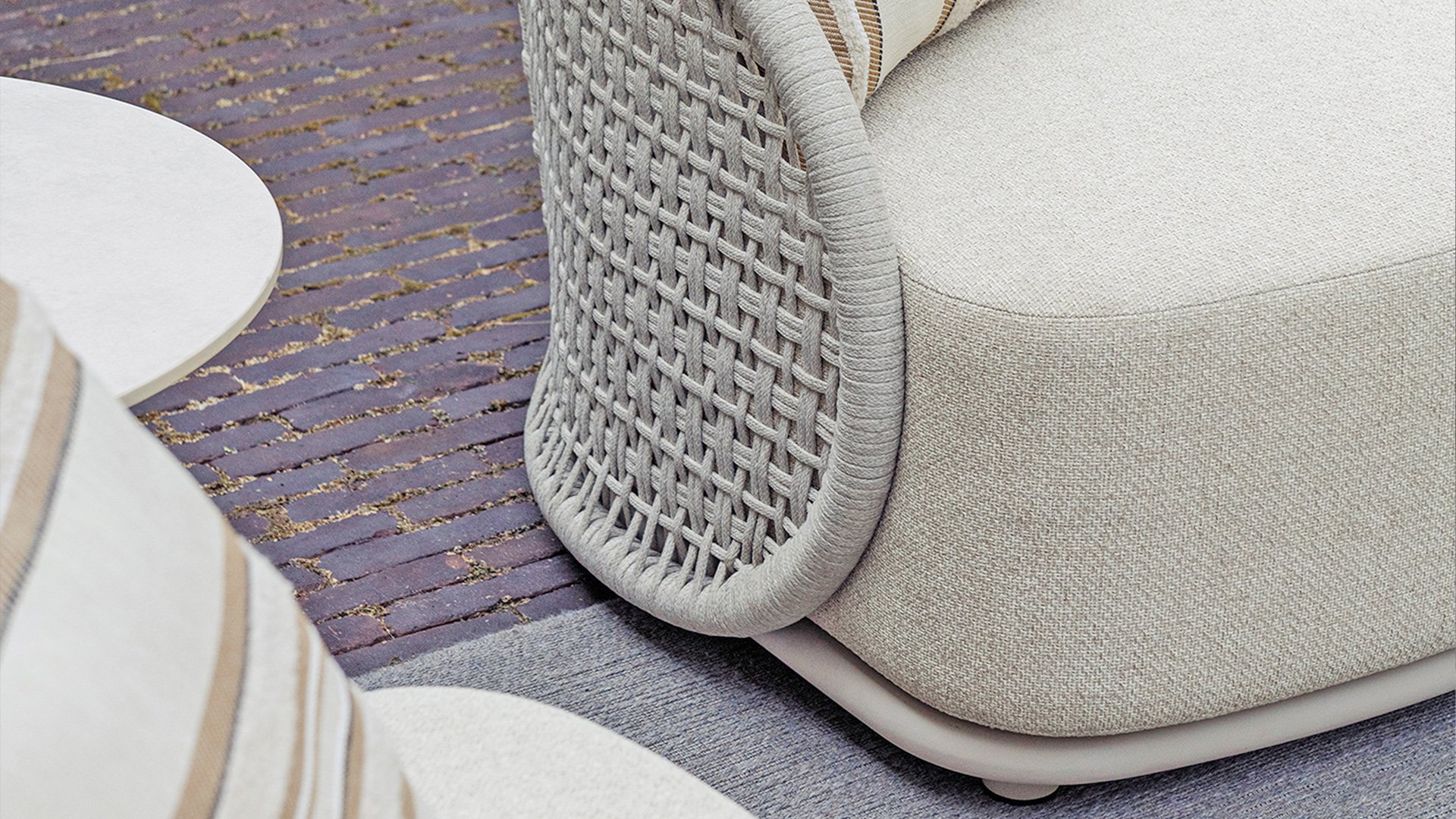 Available in Stylish Colours: The combination of the warm, linen-coloured frame and the elegant, light grey, hand-woven rope creates a modern yet cosy look that fits into any garden.