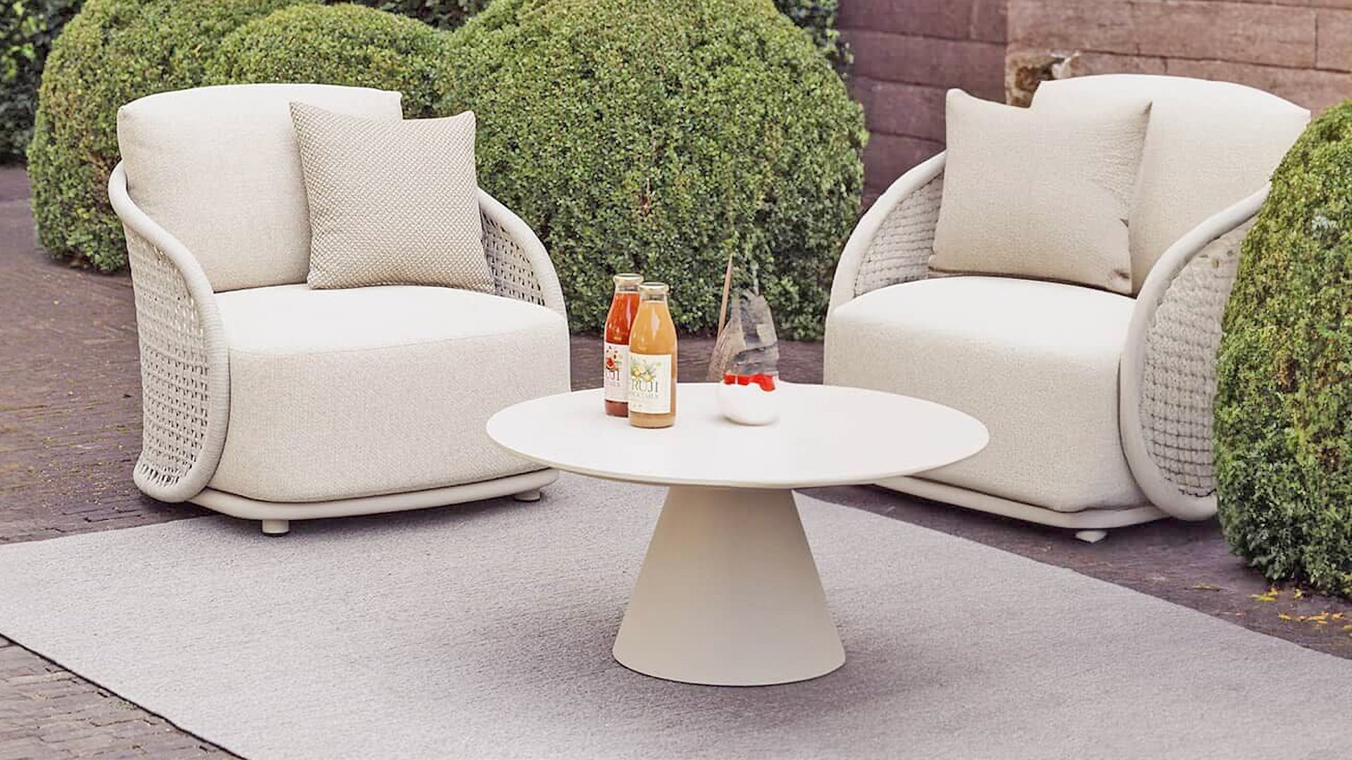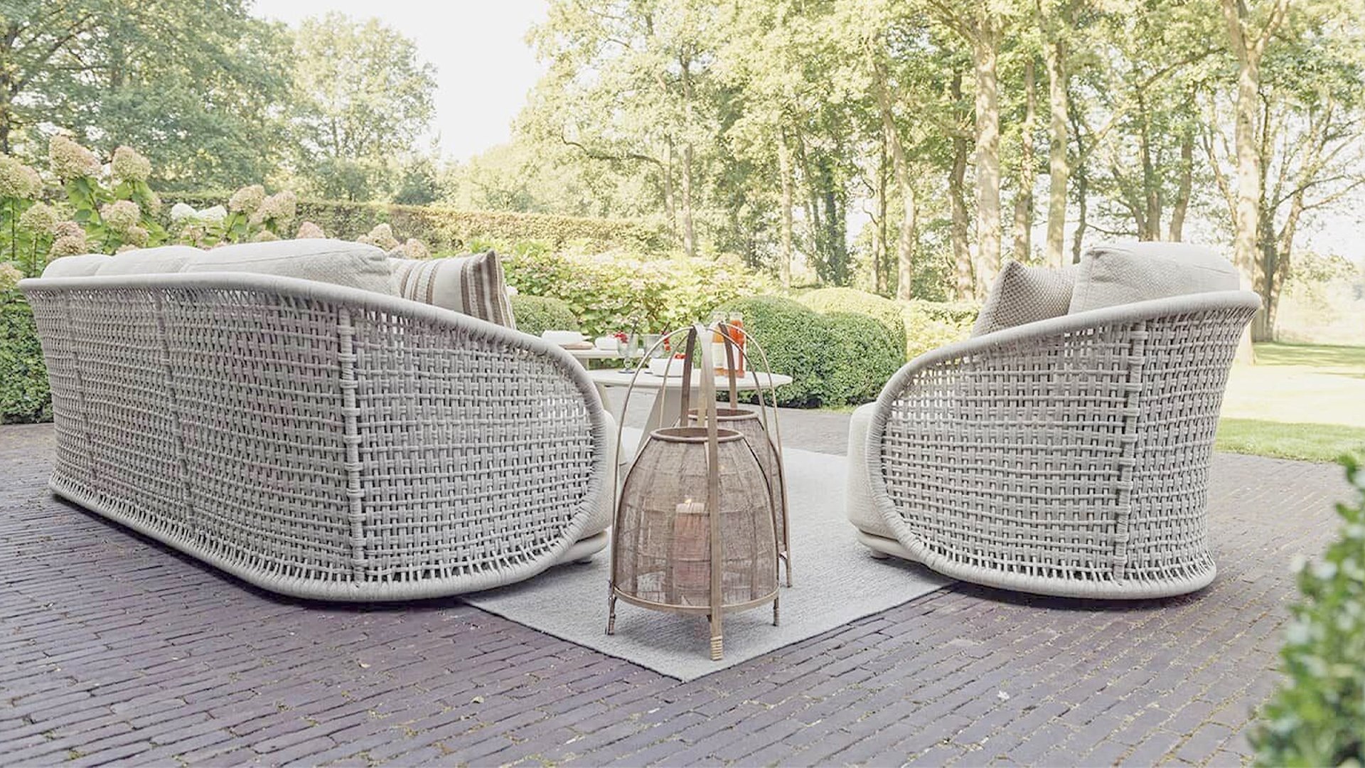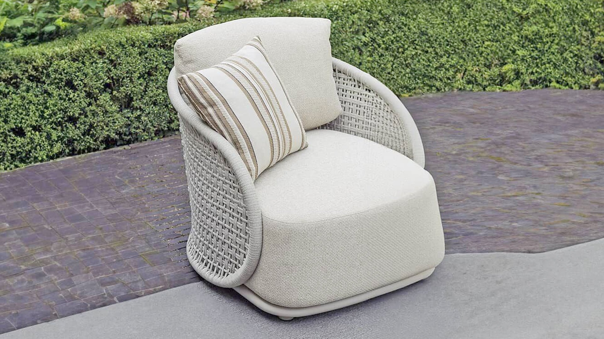 Available in Stylish Colours: The combination of the warm, linen-coloured frame and the elegant, light grey, hand-woven rope creates a modern yet cosy look that fits into any garden.