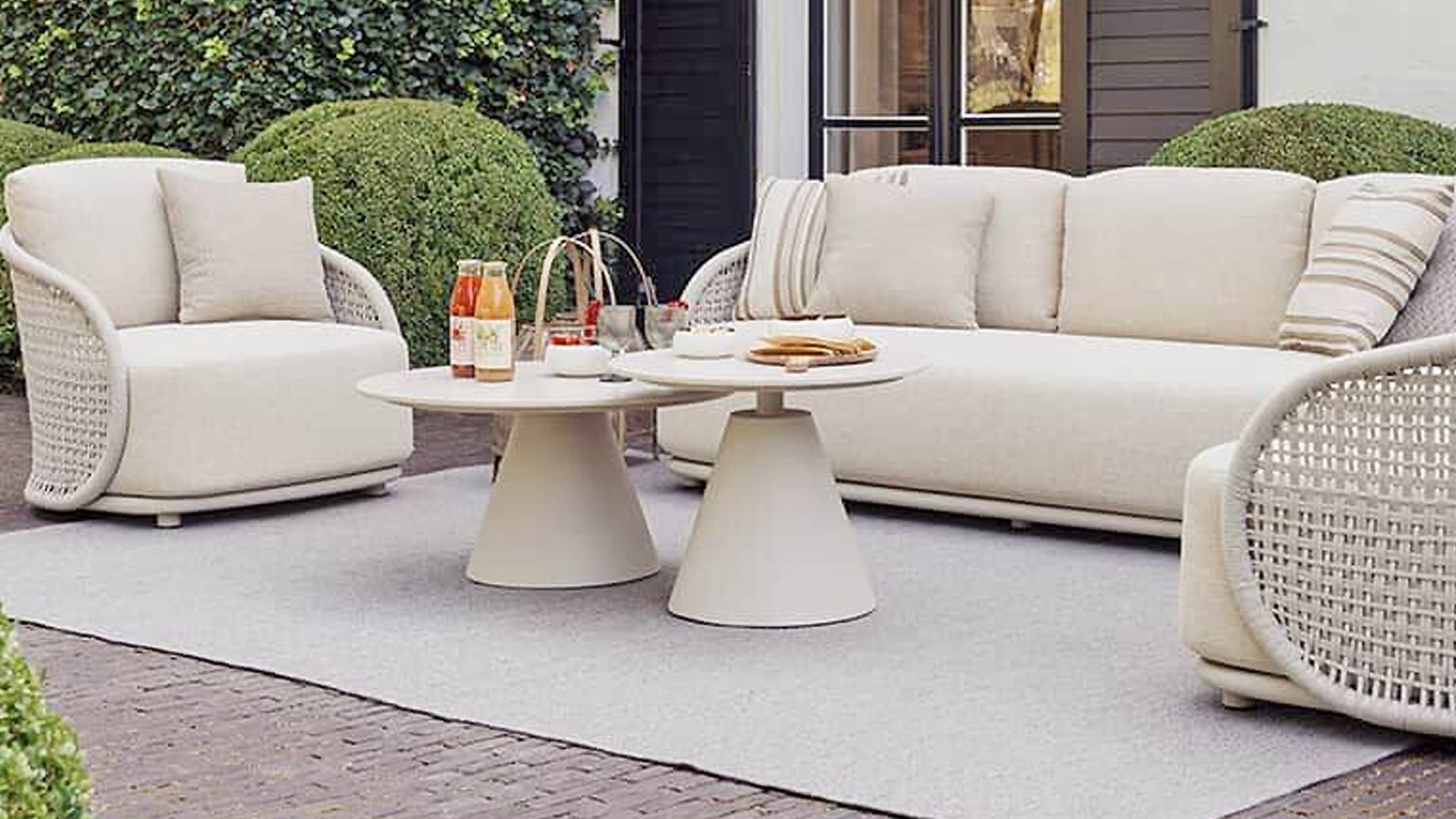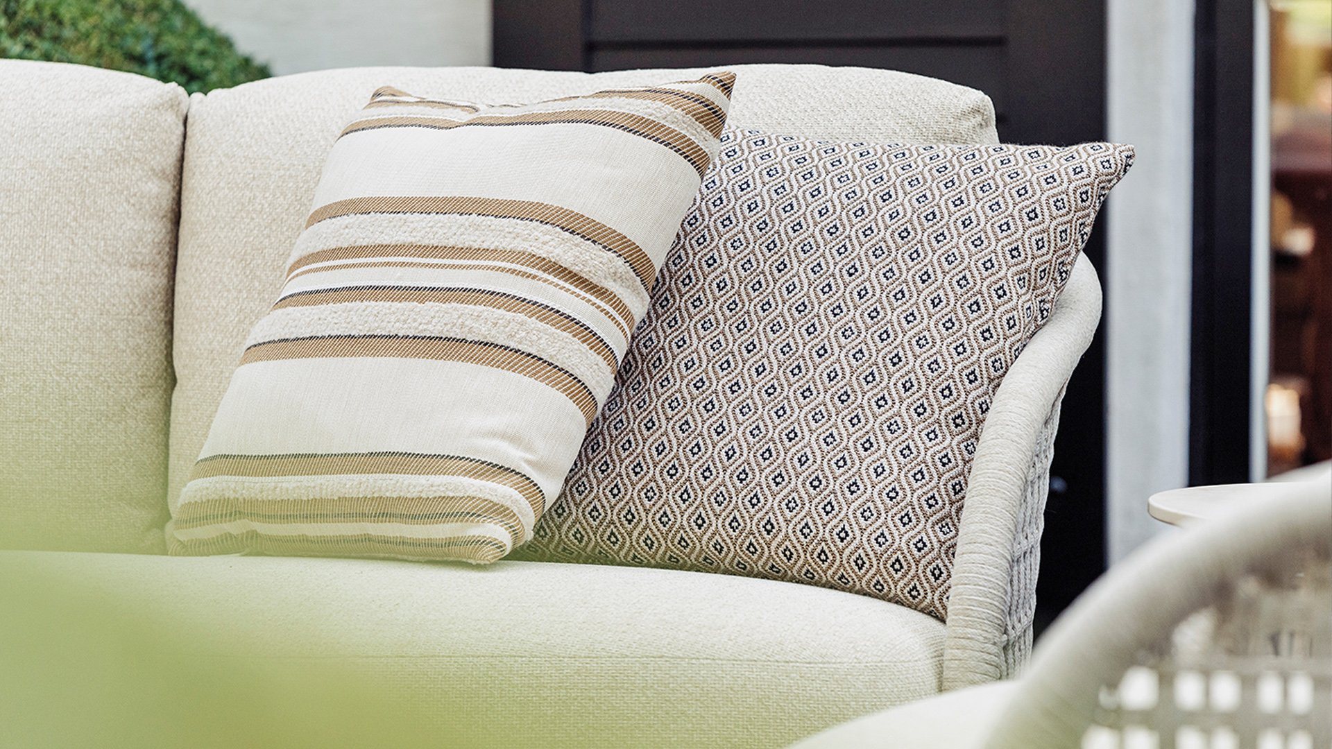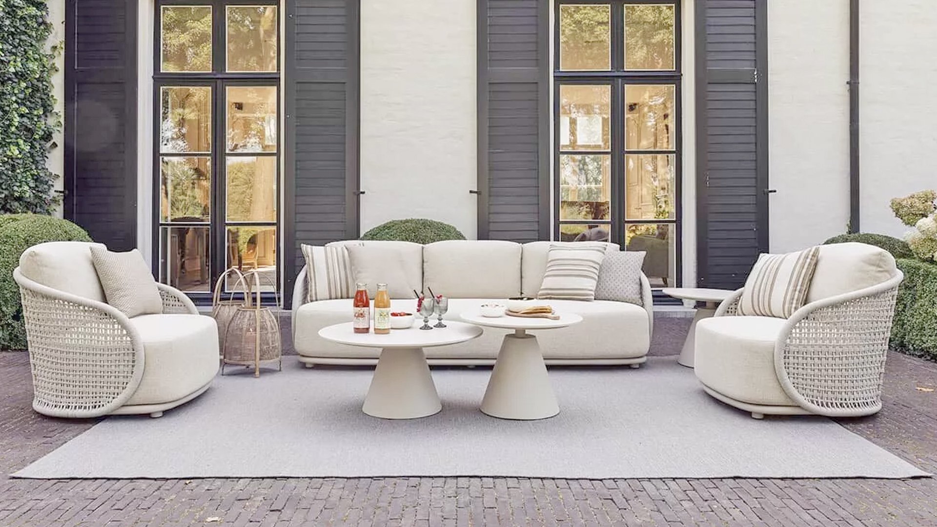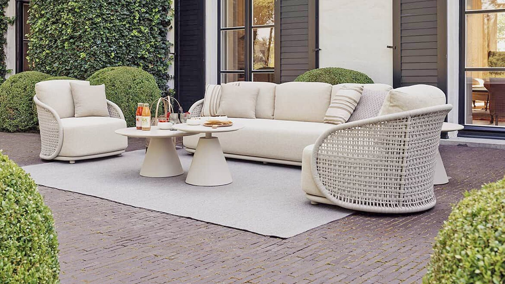 Available in Stylish Colours: The combination of the warm, linen-coloured frame and the elegant, light grey, hand-woven rope creates a modern yet cosy look that fits into any garden.