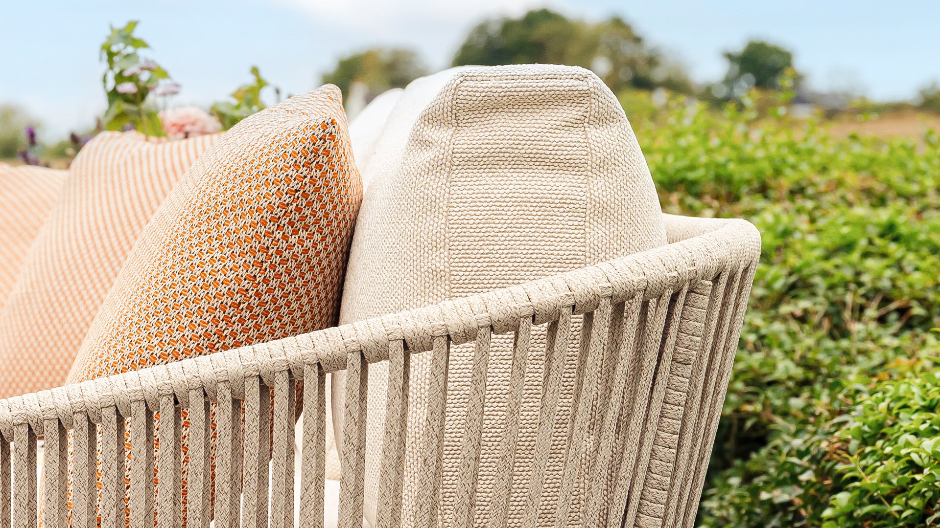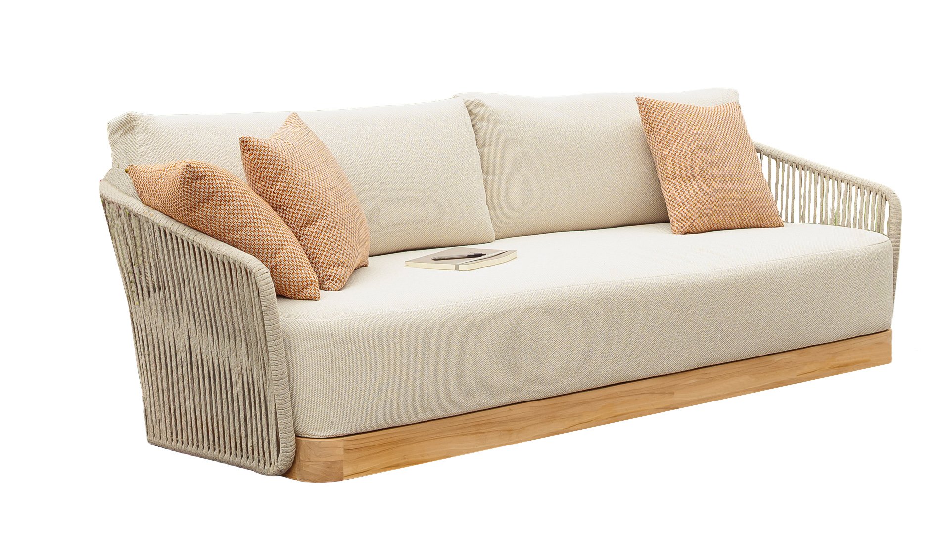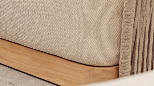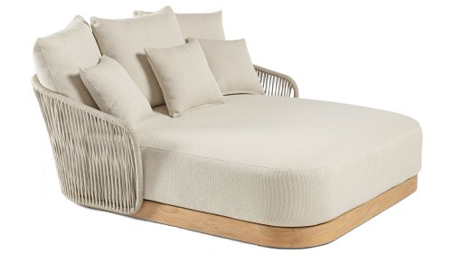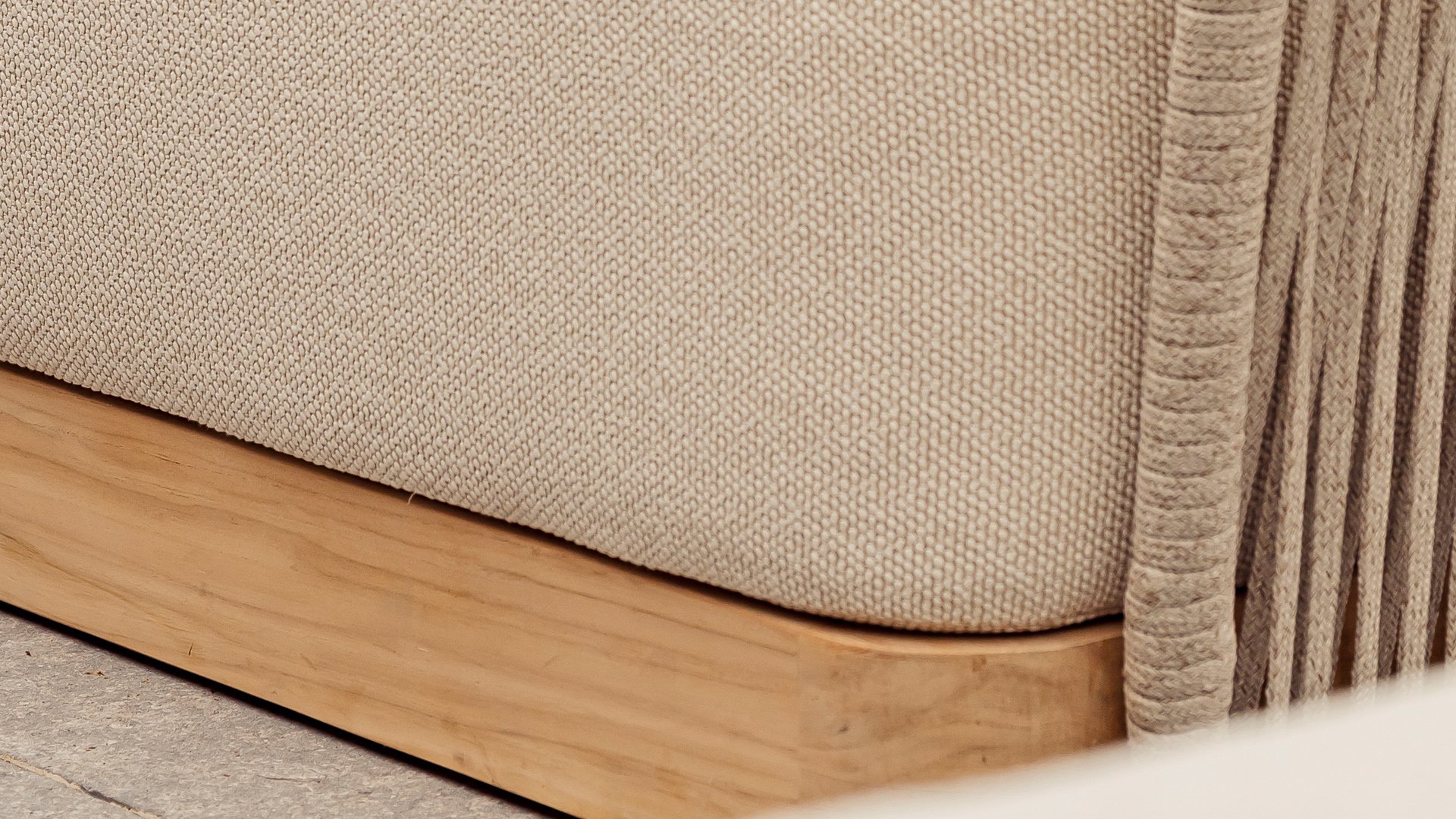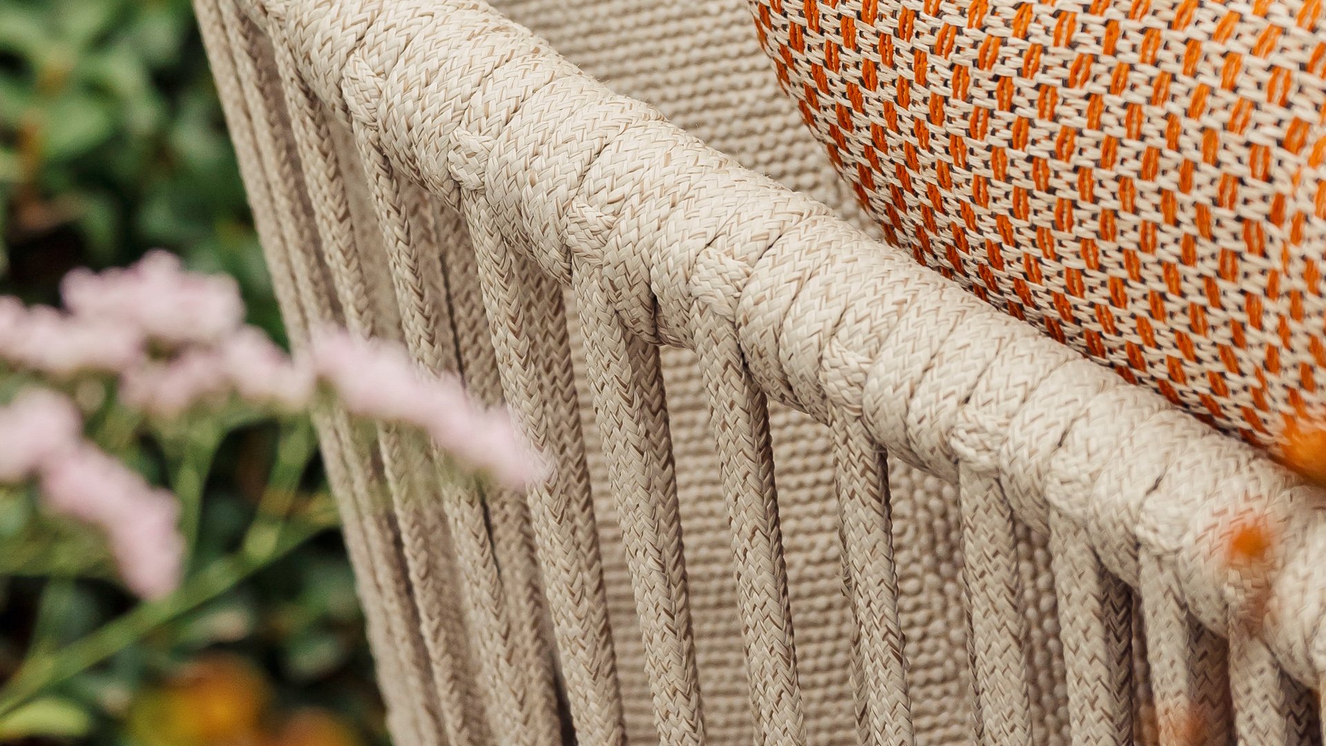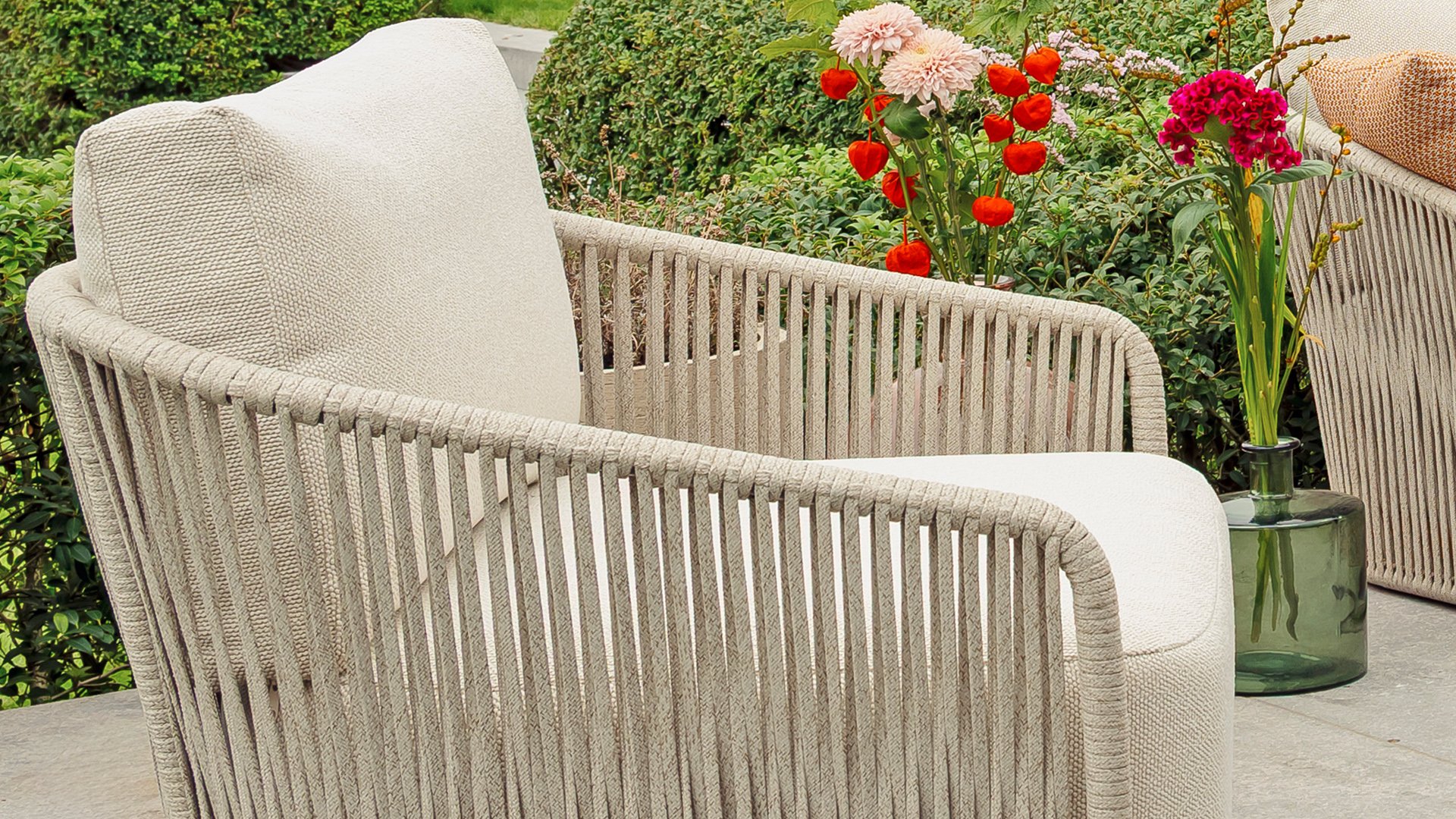 Durable materials such as Rope, Teak, Stainless Steel (RVS), aluminum, and Olefin cushions.