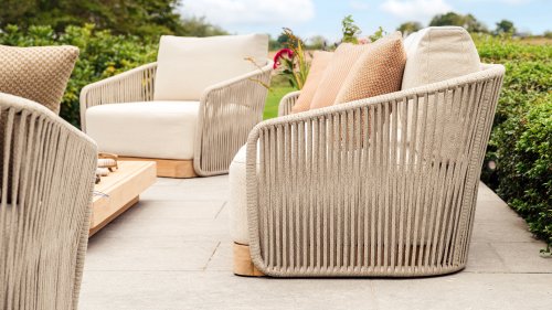 The Gescova Nino lounge set is designed to offer maximum seating comfort – the key feature that makes this model so exceptional. The deep seat, high-quality all-weather cushions, and ergonomic design ensure you can effortlessly sink in for hours. This is lounging at the highest level ✨