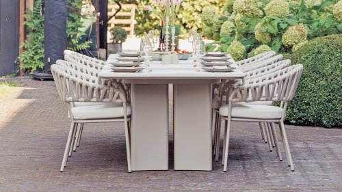 The Gescova San Remo garden table is a modern design table made of maintenance-free materials like aluminum and ceramic. In short: a stylish, durable, and easy-to-maintain garden table!