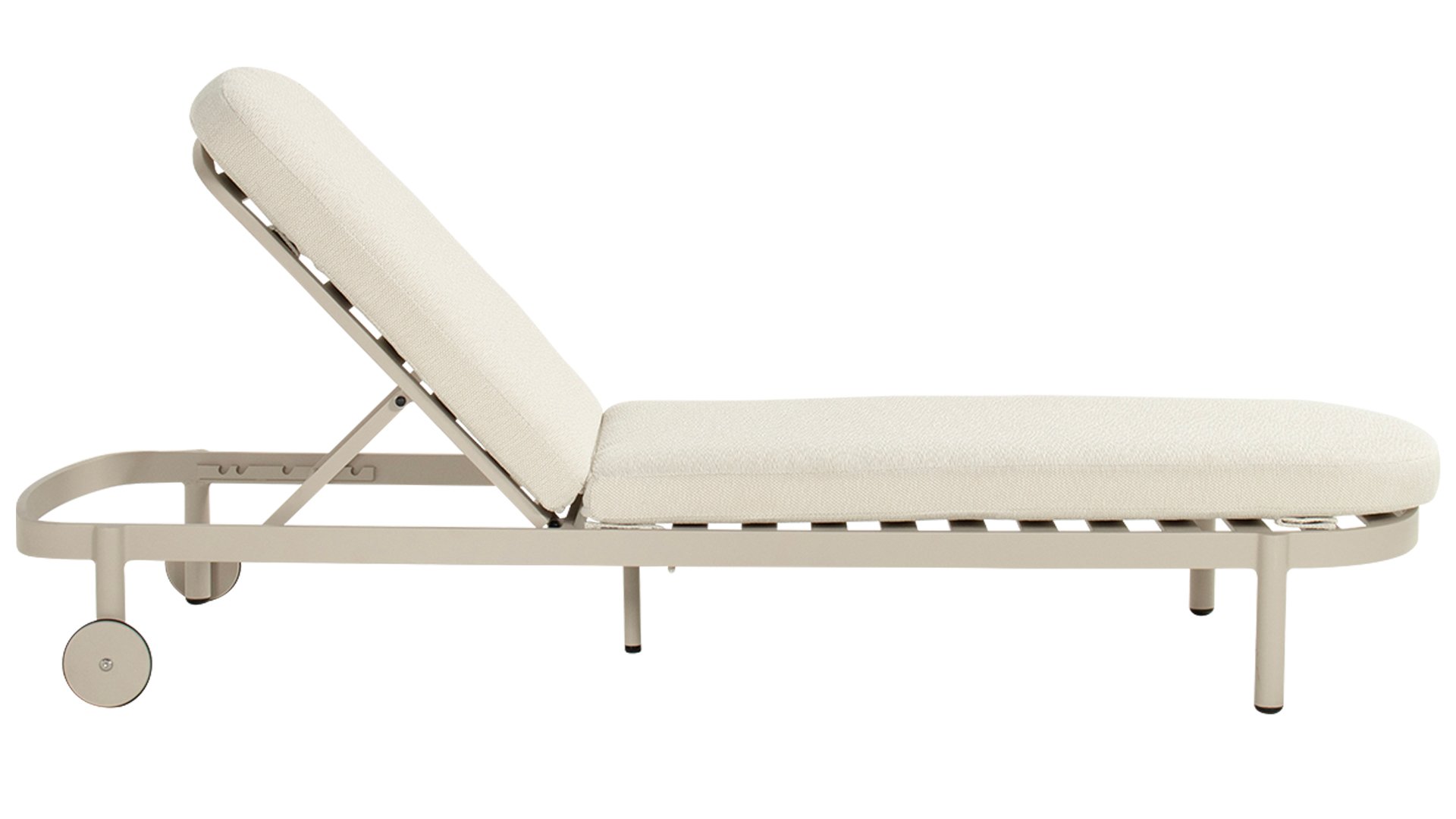 The Palma sunbed combines style with ease of use. Thanks to the adjustable backrest and wheels, the bed is easy to move and adjust. The beige Weather Ready cushion provides comfort even in unpredictable weather.