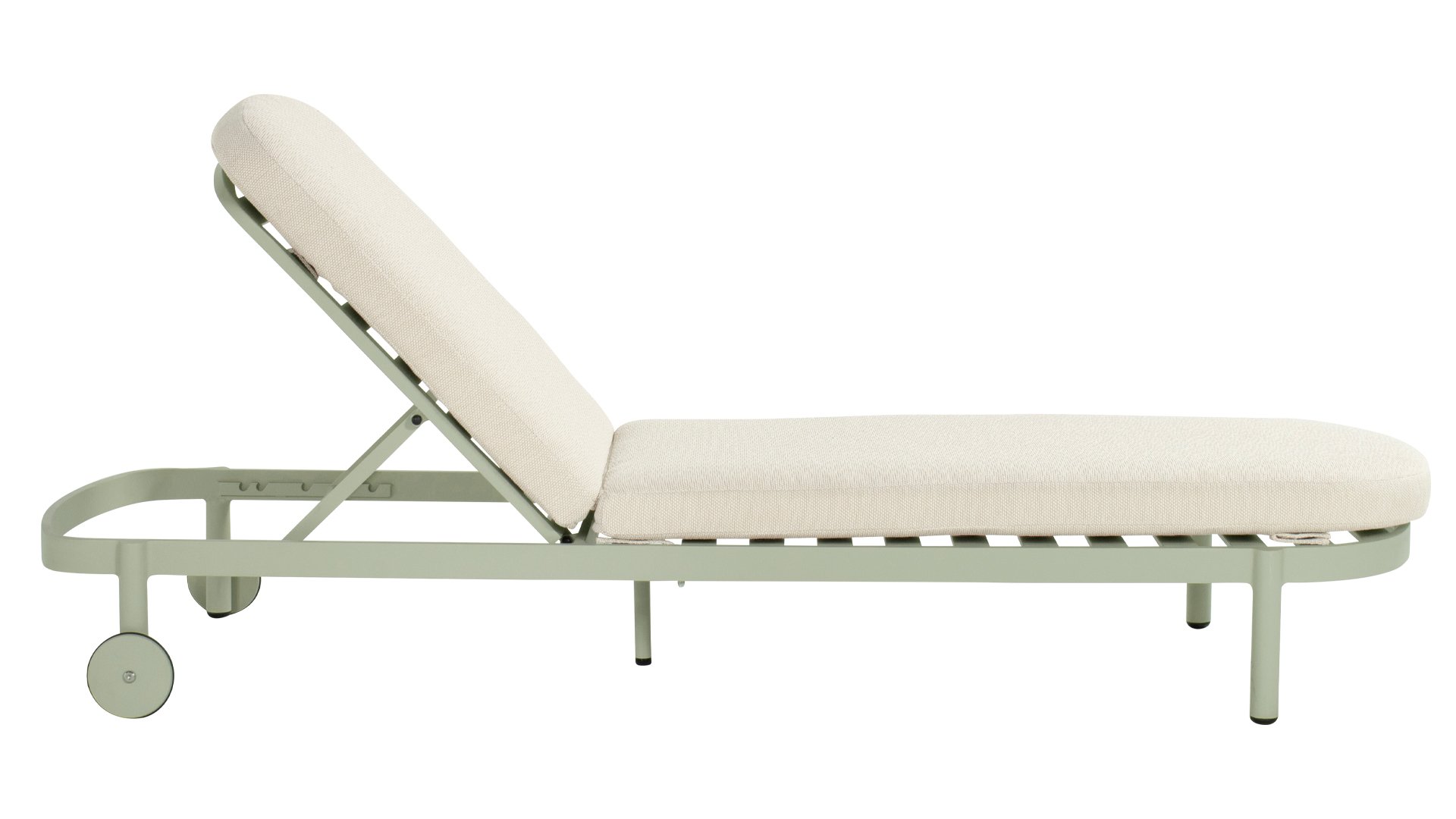 The Palma sunbed combines style with ease of use. Thanks to the adjustable backrest and wheels, the bed is easy to move and adjust. The beige Weather Ready cushion provides comfort even in unpredictable weather.
