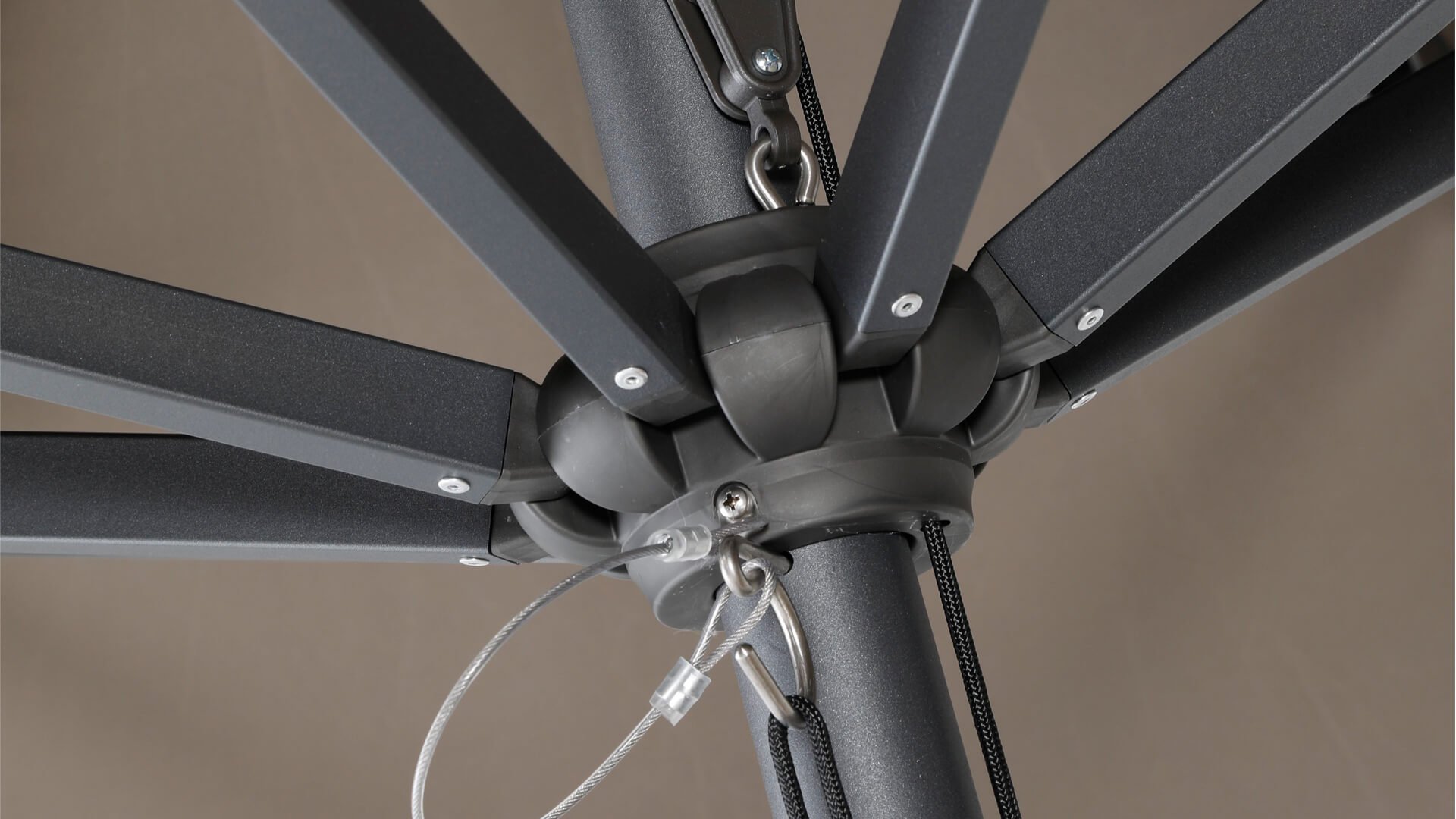 The Profi-Line collection consists of larger standing umbrellas that can be used in large gardens and hospitality venues. The umbrellas are equipped with an advanced pulley system, making them easy to operate. The frame is thicker than usual, and the spring in the ribs ensures that the umbrella is more resistant to weather influences.