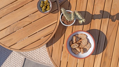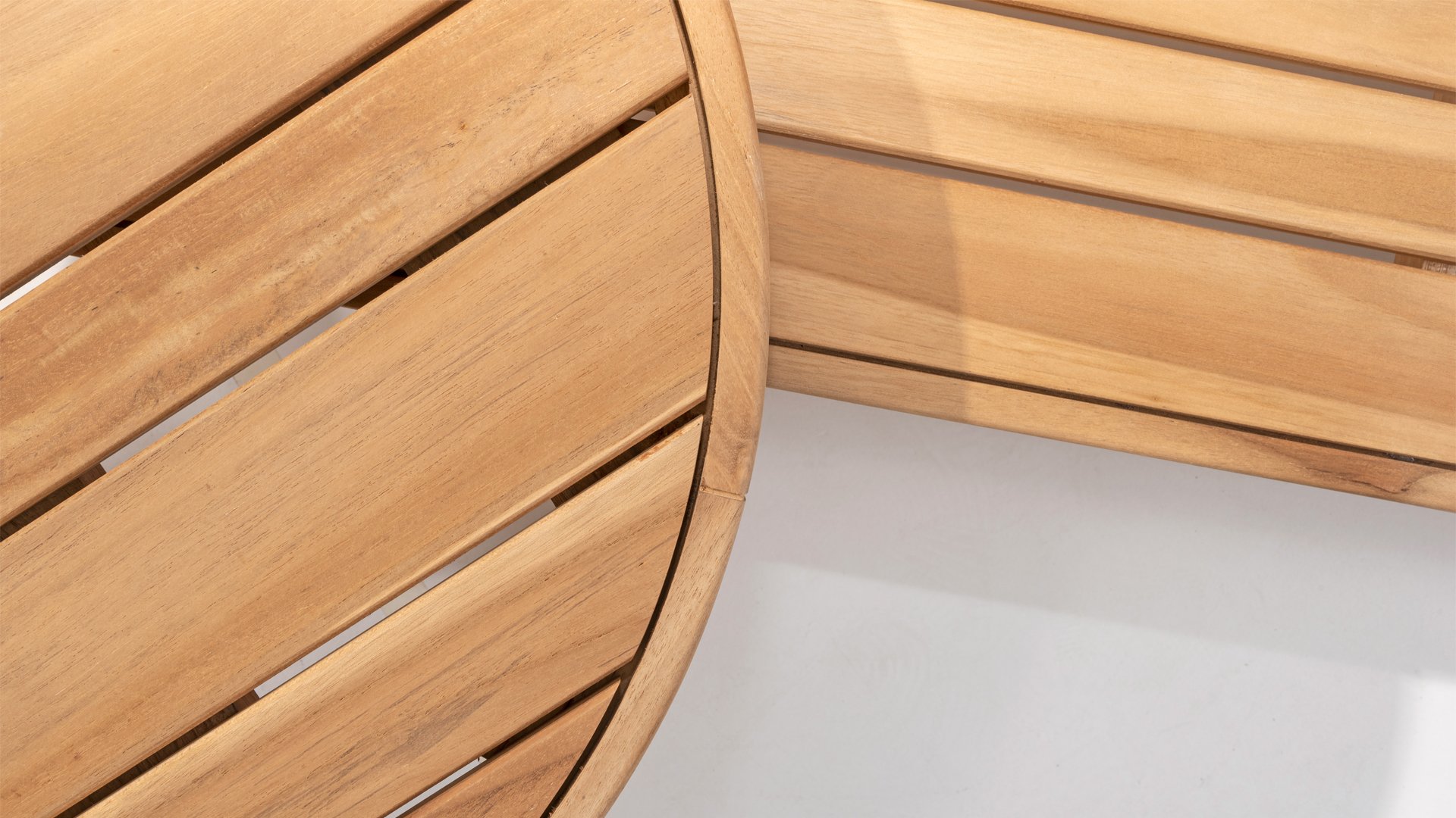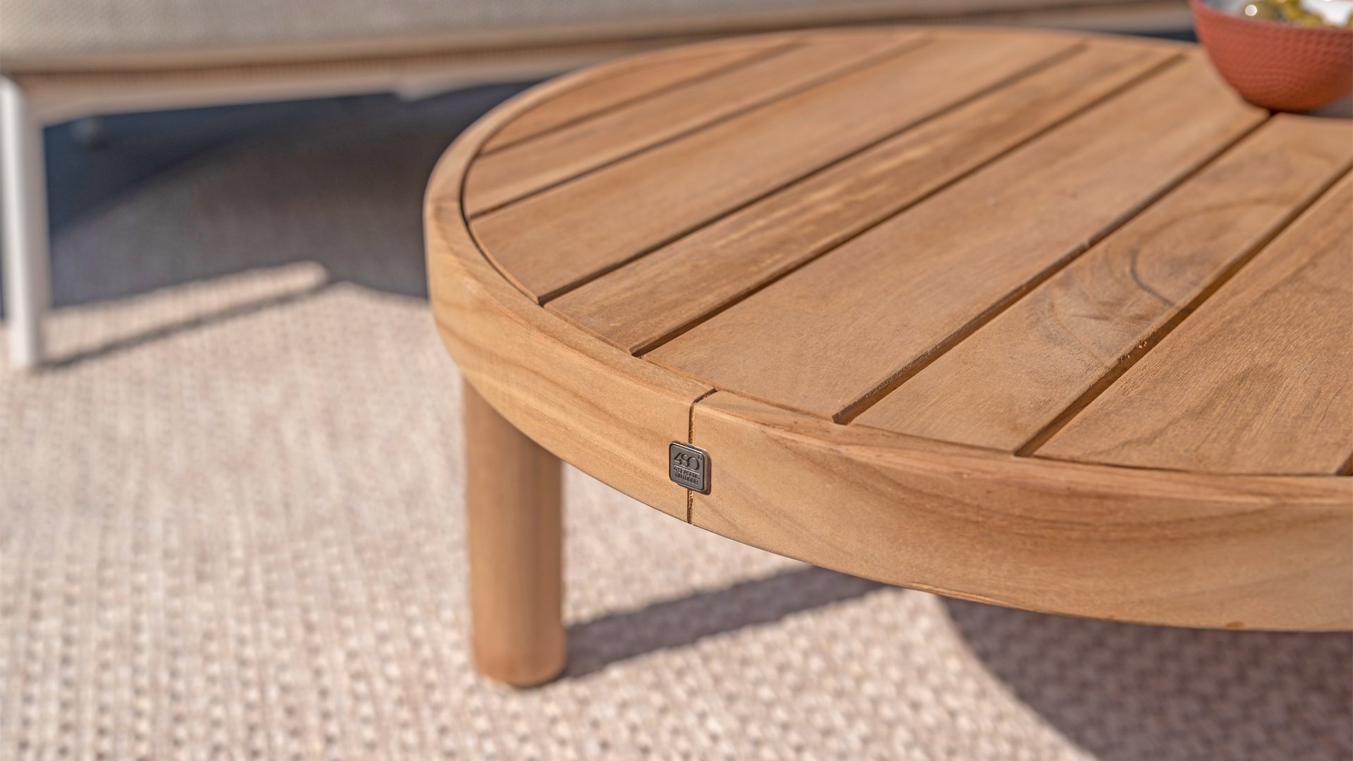 Teak is a natural product and particularly suitable for outdoor use. It is resistant to pests and mold and can withstand sun, rain, and snow. Over time, teak develops a silver-gray patina. Teak is a robust material and requires little maintenance. If you prefer the original color of your teak, you can easily prevent it from turning gray by regularly using our care product. You can also clean teak with green soap. We offer a warranty on all manufacturing and construction defects. This does not include the working of teak. When you choose teak, we expect you to appreciate these qualities. Hairline cracks that may develop, knots in the teak, and rough surfaces or irregular discoloration over time are not covered by our warranty. These characteristics give teak its unique character and appearance; they are part of its natural properties. Be careful with a flowerpot or vase on your teak garden table, as this can cause persistent rings or color variations. Imperfections are common; these imperfections are characteristic of this product. These irregularities can never give ground to a claim, warranty, or complaint. This is a signs ans signature of originality!
