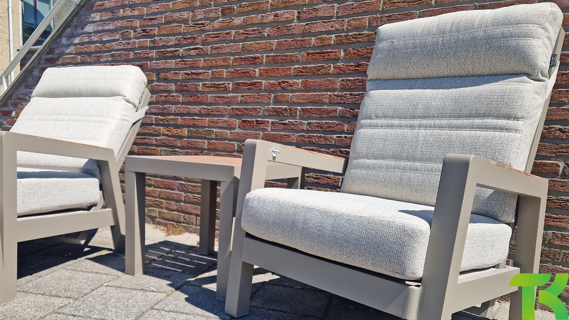 The Valerie Duo Relax set from SenS-Line is a stylish and comfortable lounge set, perfect for relaxing moments in the garden or on your patio. The frame is made of powder-coated aluminum, creating a lightweight yet sturdy structure. The latte color of the frame has a warm, neutral look that effortlessly complements various garden styles and accessories.