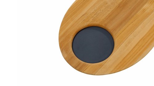 The anthracite aluminum is easy to clean and weatherproof. You can leave it outside without any issue. The quality teak wood that is used in the tray can handle a splash of rain. If you want to maintain its beautiful golden brown color, we recommend storing the tray indoors or treating it with Teak Protector.