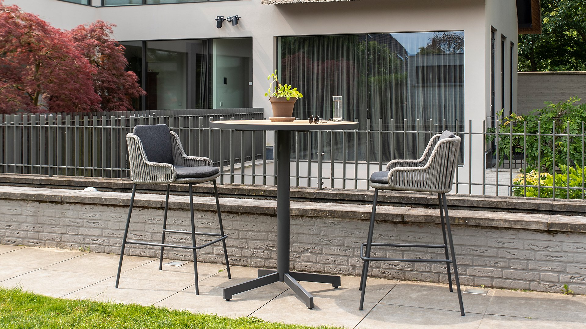 The Taste by 4Seasons Fiesta table is a beautifully finished dining table. Just look at that sleek aluminum edge that runs around the warm teak wood. The Fiesta can be combined with practically all dining chairs from our collection. The Fiesta series also includes a square 90x90cm bistro table and a round Ø90cm bistro table.