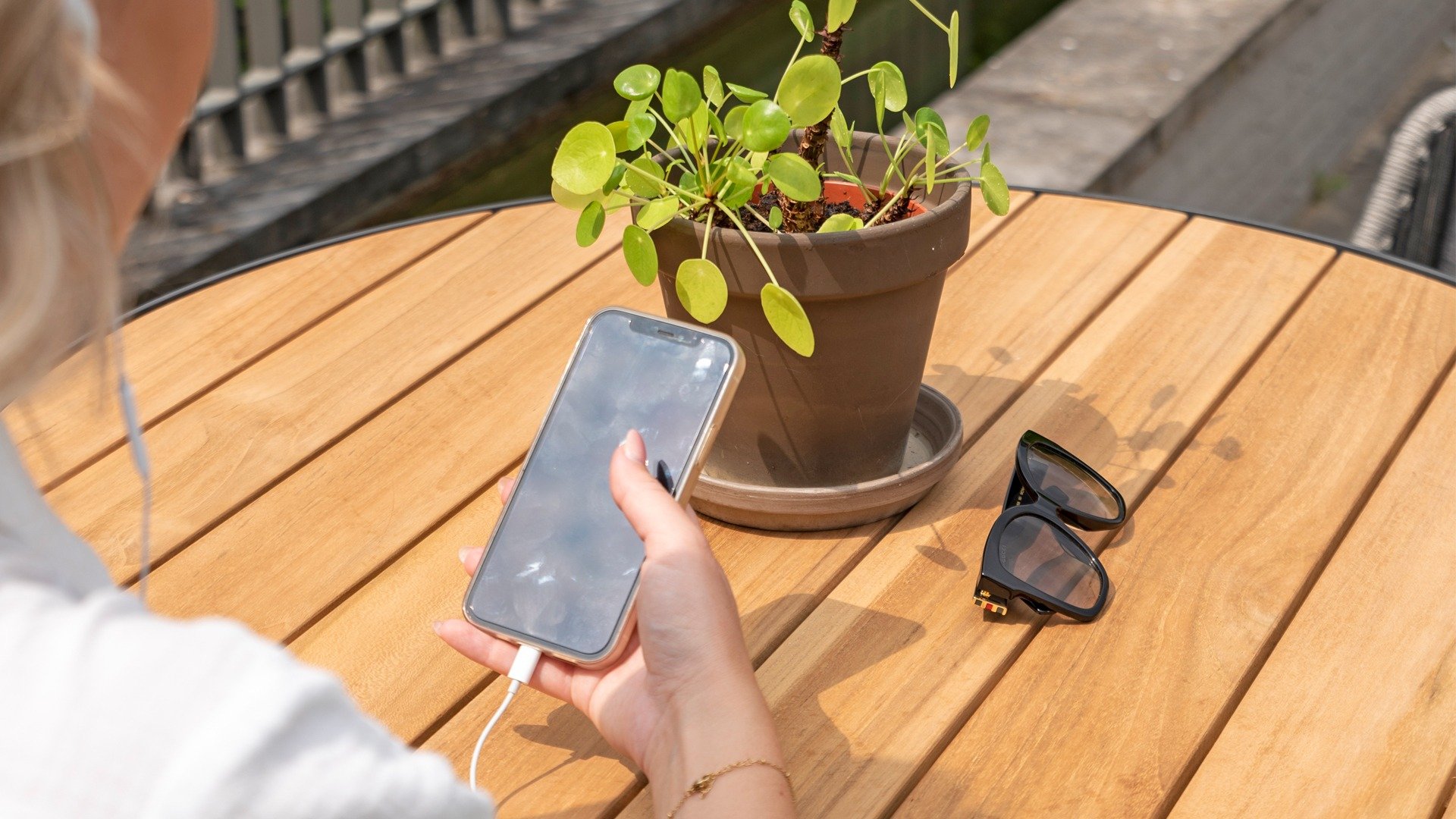 The Taste by 4Seasons Fiesta table is a beautifully finished dining table. Just look at that sleek aluminum edge that runs around the warm teak wood. The Fiesta can be combined with practically all dining chairs from our collection. The Fiesta series also includes a square 90x90cm bistro table and a bar table.