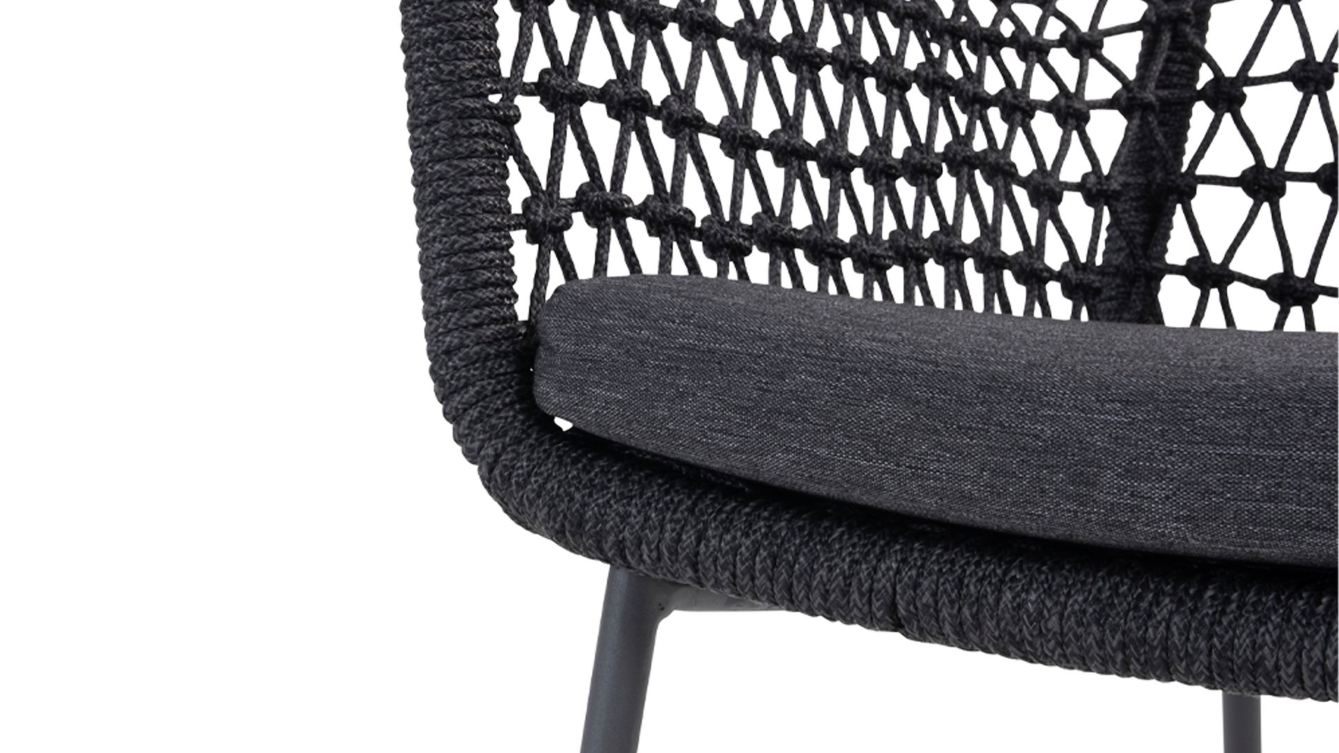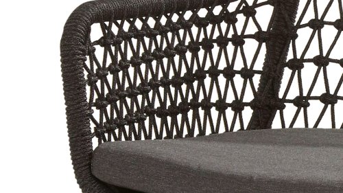 The Taste by 4Seasons Athena garden chair is unique in many ways. The weaving specialists have years of experience and are capable of processing intricate patterns and knots. The Taste Athena dining features a shell with uniquely knotted Rope. The airy looks are reflected in the shell and also in the frame, which is made from subtle stainless steel tubes with an anthracite-colored coating. Furthermore, the cushions are equipped with an Olefin cushion cover for optimal comfort and high weather-resistant properties. Enjoy years of the Athena chair in your garden thanks to high-quality materials and exclusive design.