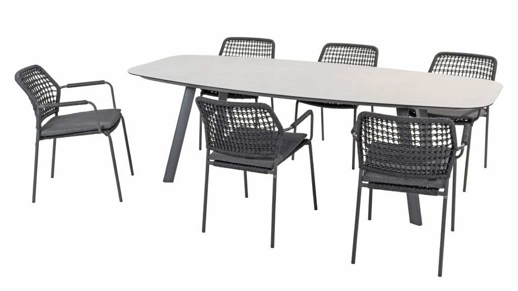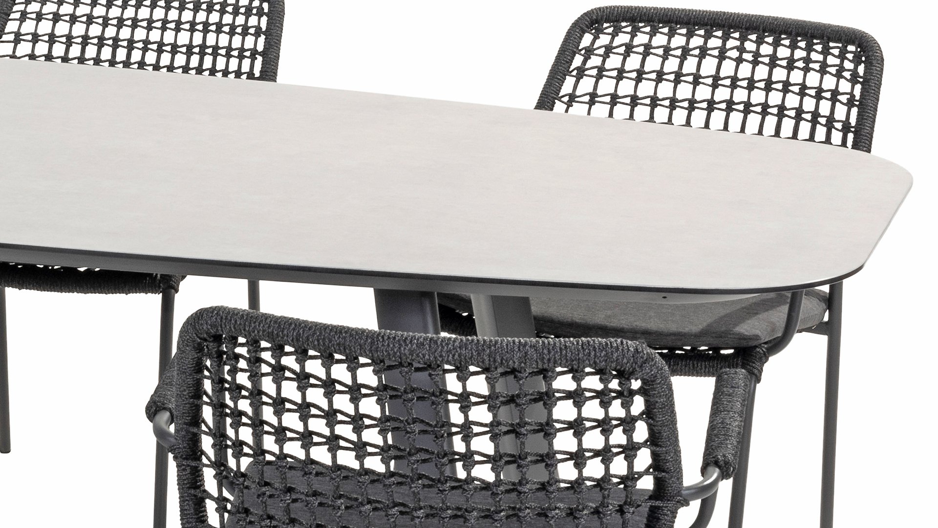 Looking for a low-maintenance table with a modern look? Then consider the Taste by 4 Seasons Outdoor Manolo 240cm, available in anthracite, latte, and terre. The shape of the tabletop and the position of the aluminum legs make this table incredibly practical. This shape creates ample space on all sides. The table's distinctive design features a Danish oval tabletop made of glass-printed ceramic, allowing it to remain outdoors year-round. No room for a 240cm table? The Taste 4 Seasons Manolo 75cm or 180cm are alternatives; both sizes are available in latte, anthracite, and terre.