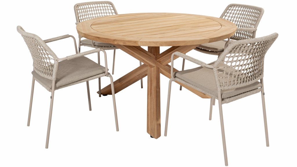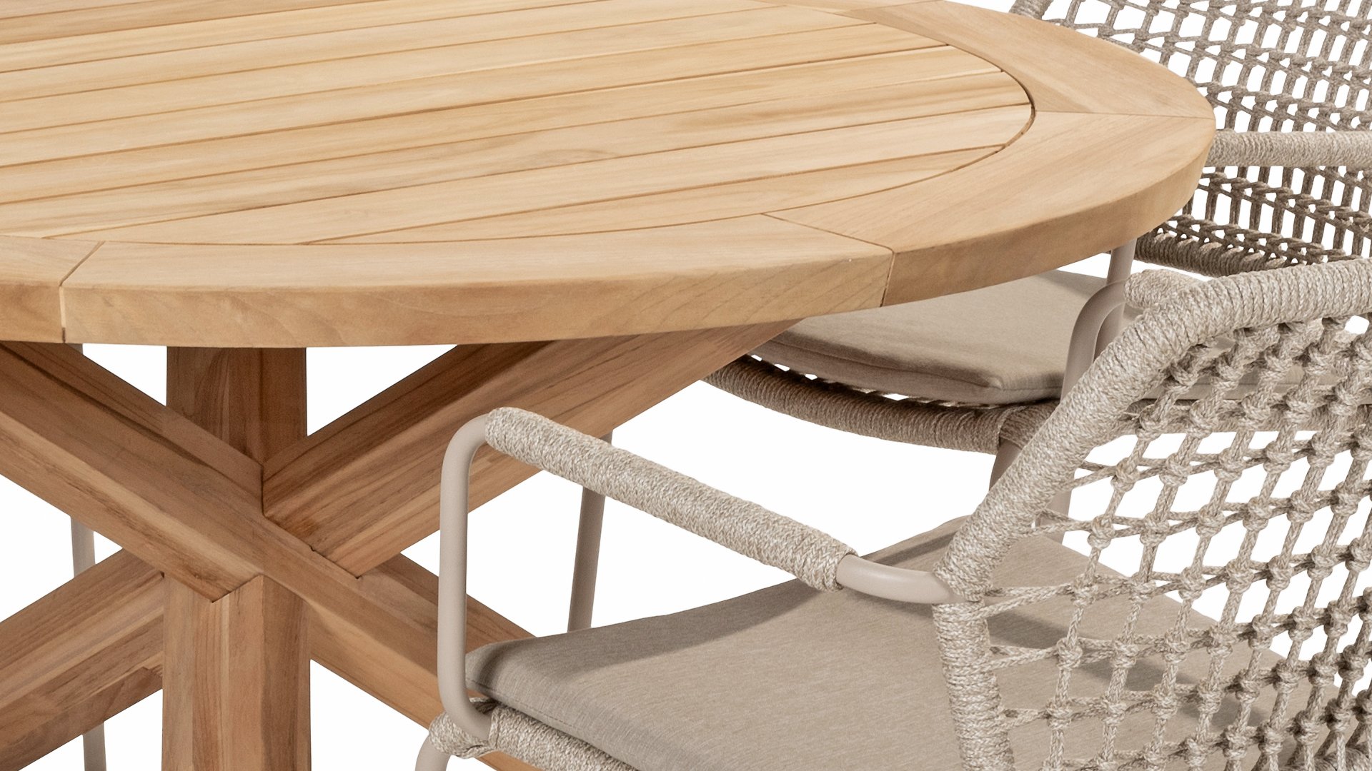 You can certainly call this table the highlight of the collection. The high-quality teak, in combination with the beautiful cross base, makes this Taste by 4Seasons Prado Ø130cm table a gem. It can be combined with almost any dining chair from our collection, so there is something for everyone. It can also be combined with the Prado Lazy Susan. The top is available in both teak and ceramic. The Prado with a teak top is available with the following table legs: Teak, Latte, and Anthracite. Still a ceramic enthusiast? Then check out the Prado ceramic with the Terre & Latte frames.