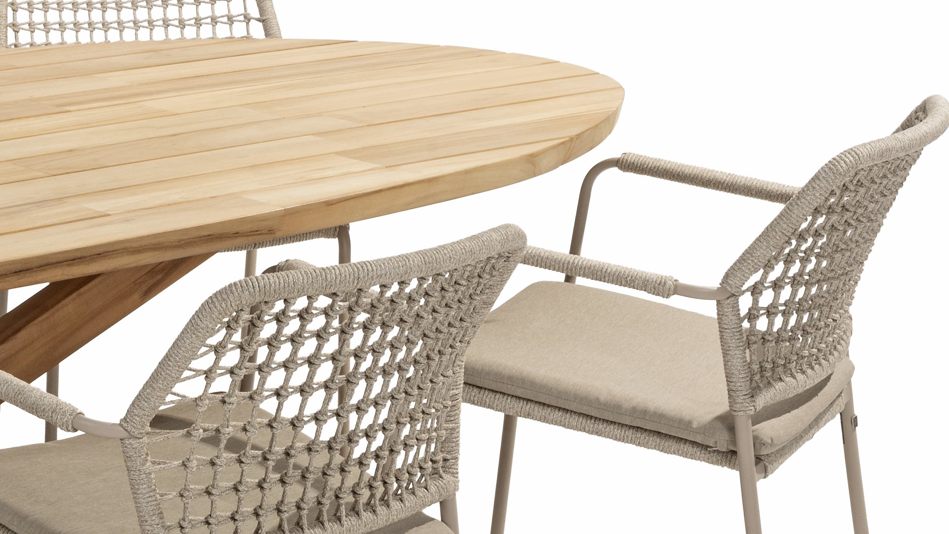 This beautiful material is perfect for outdoor use, because Taste Rope isn't just any shoelace. Taste uses very high-quality rope made from 100% SDP (Solution Dyed Polypropylene). This material is extremely strong and has very little stretch. Polypropylene is oil-based, so dirt and contaminants are virtually insoluble, just like our cushions. Taste offers exclusive designs using hand-woven rope patterns and techniques.
