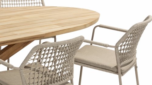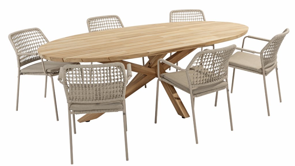 The Taste by 4Seasons Prado Ellips can certainly be called a work of art. Just look at how artistically that leg structure is put together. The thick teak wood top has an angled edge and gives the table a sense of lightness. It can be combined with our entire collection of garden chairs. Also available with anthracite, teak, latte, or terre base: