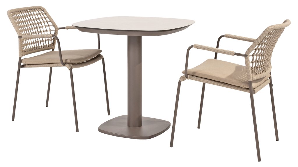 This table has a stylish and modern appearance with dimensions of 75x75x75 cm, making it perfect for smaller spaces or as a side table. The tabletop of the Taste Manolo is made of ceramic on glass, which not only gives it a luxurious look but also ensures durability and ease of maintenance. The Taste by 4 Seasons Outdoor Manolo 75cm is available in three trendy colors: Latte, a warm, neutral shade that easily complements a variety of chairs. Anthracite, a darker shade that adds a sleek, modern look. And Terre, a warm, dark earth tone. This versatile table is ideal for both indoors and outdoors, offering the perfect spot for a cup of coffee or a cozy dinner. Also available in larger sizes: 180x95x75cm and 240x103x75cm, in three colors.