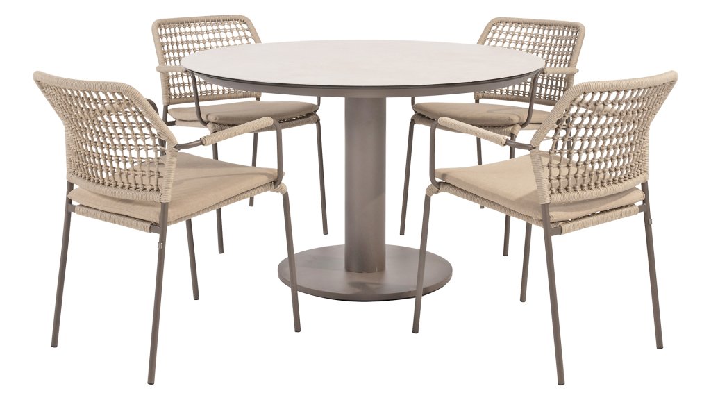 Meet the Taste Sarah, the round table that effortlessly combines elegance and functionality. This beautiful table is a real eye-catcher in any garden or dining area. Its round design creates a cozy, inviting atmosphere where everyone at the table stays connected. The high-quality printed ceramic top not only creates a luxurious look but is also exceptionally strong, scratch-resistant, and easy to maintain. The central leg offers maximum legroom and gives the table a modern, airy look. The Taste by 4 Seasons Outdoor Sarah is available in two versions and two colors. The table is available in two sizes: 120x75cm (dining) and 130x69cm (low dining), in the colors Latte and Terre. Check them out below: