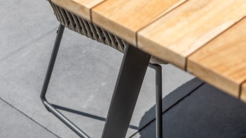 The Taste by 4Seasons Basso 240cm table is a heavy quality table. The elegant sled leg combined with warm teak wood creates a robust whole. The center leg is included by default, but if desired, the table can also be used without the center leg.