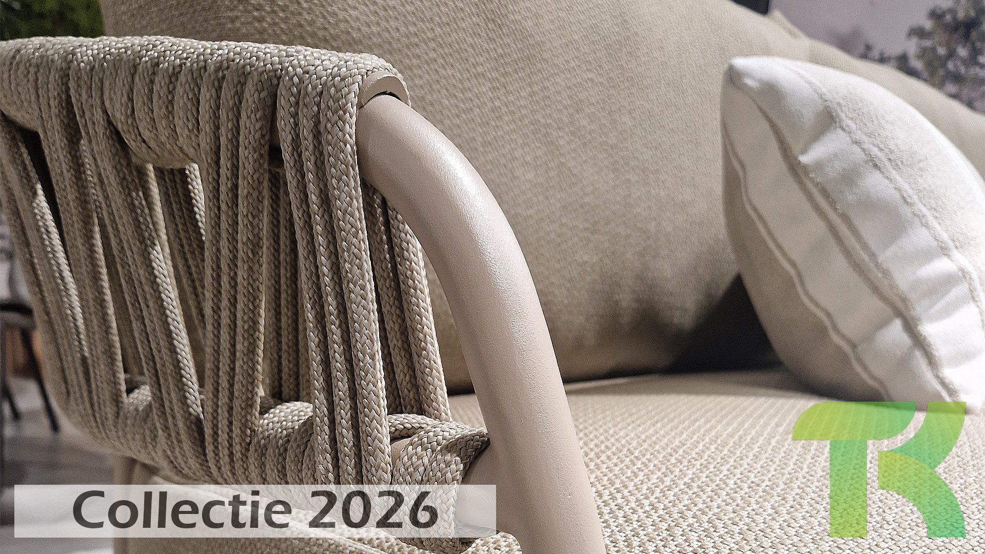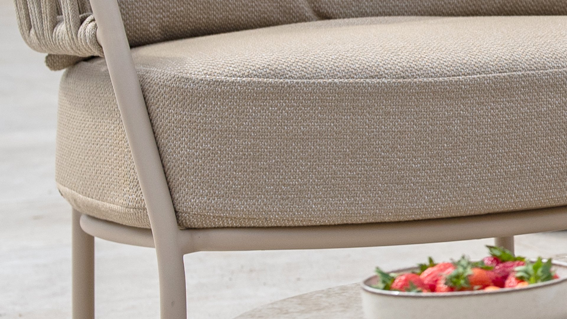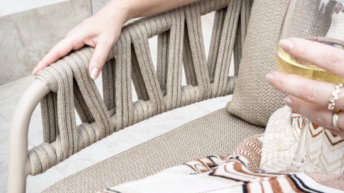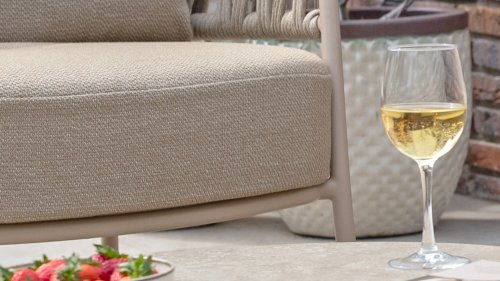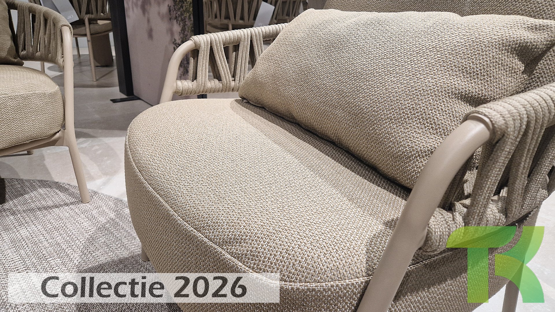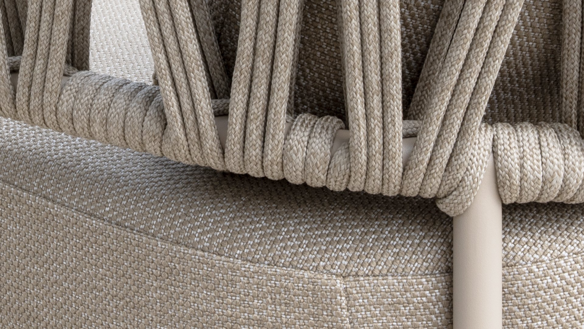 Calma by Taste by 4 Seasons – Taupe rope, latte frame, and ultimate seating comfort.