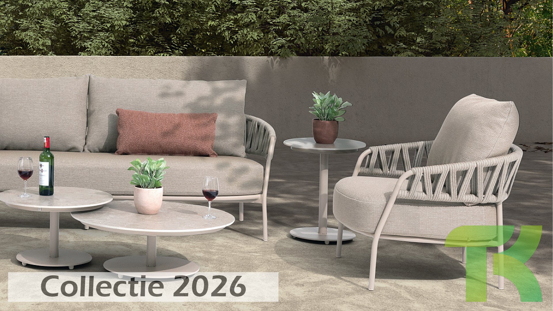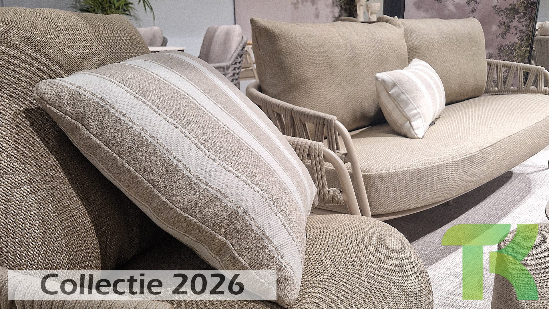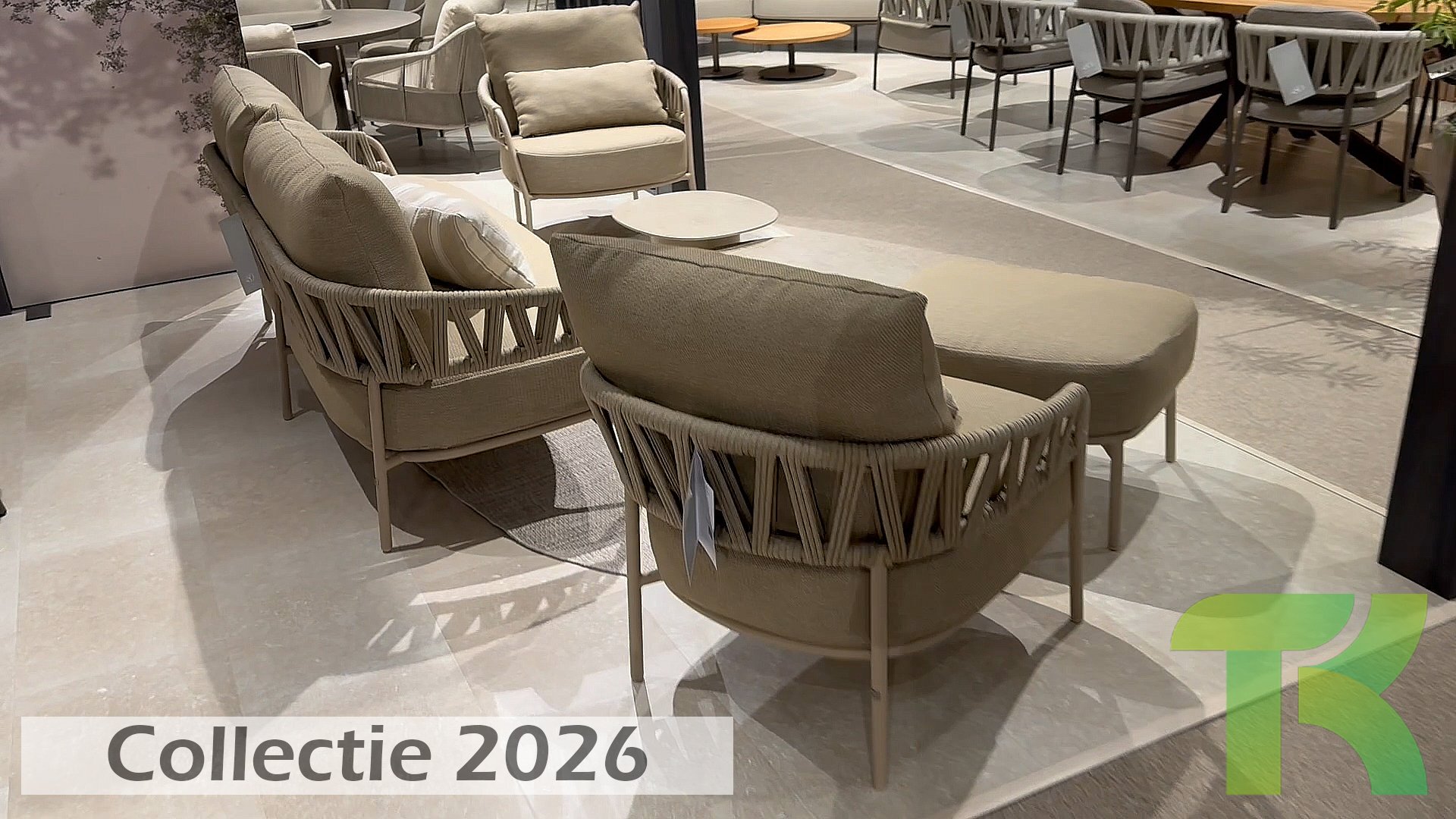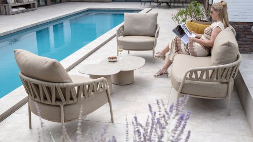 Calma by Taste by 4 Seasons – Taupe rope, latte frame, and ultimate seating comfort.