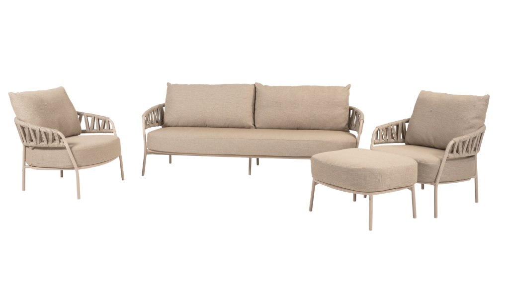 The Calma lounge set offers excellent seating comfort, ideal for long summer evenings, relaxing moments with a book, or cozy get-togethers with family and friends. In addition to the lounge set, the Calma series is also available with a matching Calma dining chair, allowing you to furnish your entire outdoor space in a consistent style. With the Calma lounge set, you combine style, comfort, and durability. Taupe rope and a latte frame create a calm, natural color combination that perfectly matches the name Calma. Create your own outdoor paradise and enjoy every moment in ultimate comfort.