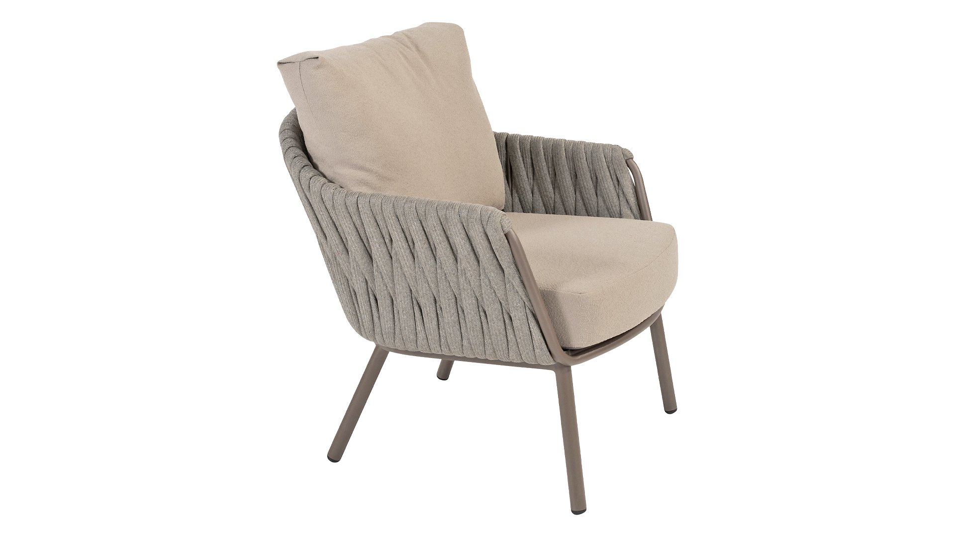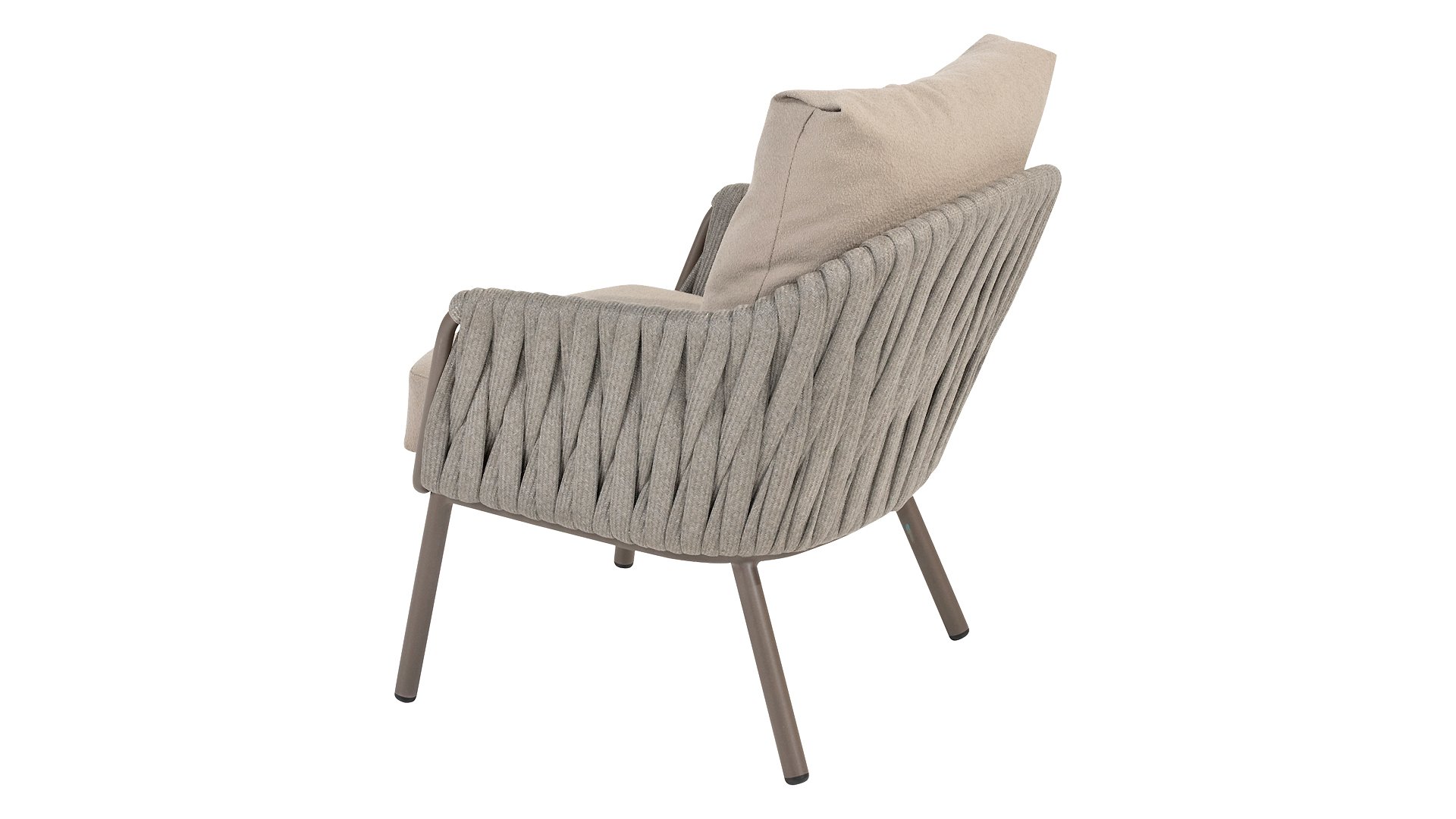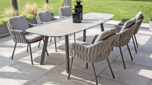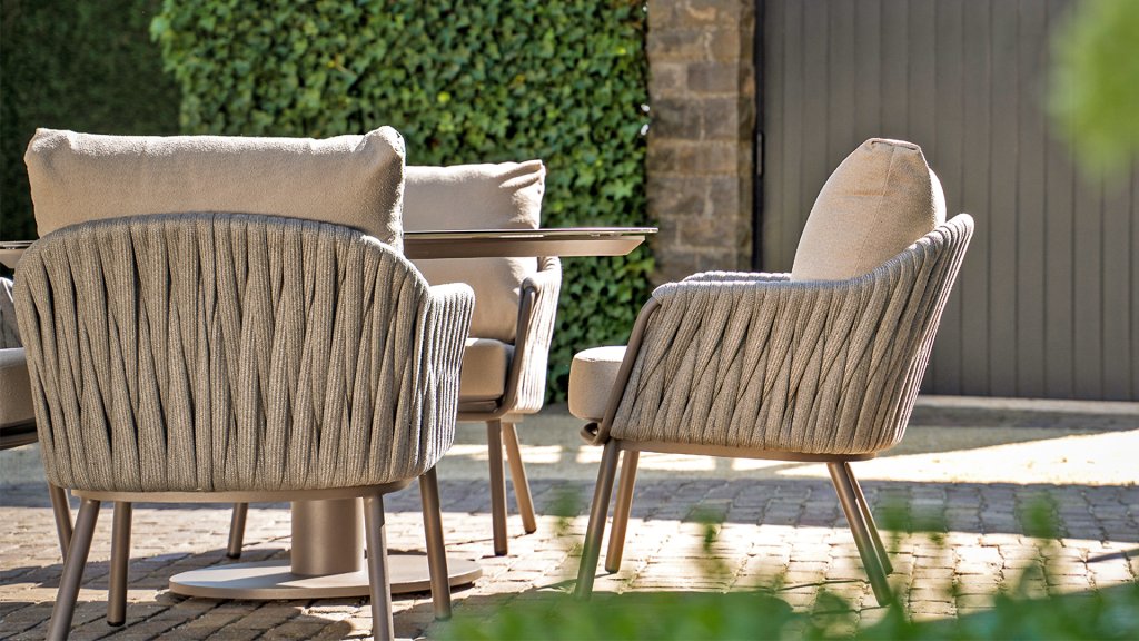 The low frame with its soft rope wickerwork creates a relaxed, modern look that perfectly complements a lounge-style dining experience. - Durable & weatherproof