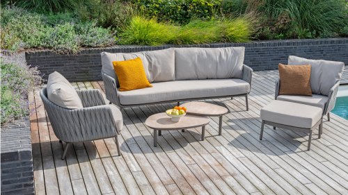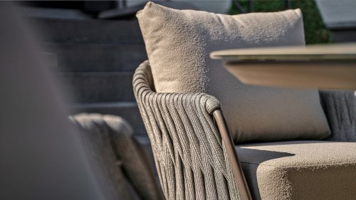 Powder-coated aluminum, high-quality rope, and Olefin cushions withstand sun, rain, and daily use. - Ultimate seating comfort