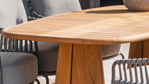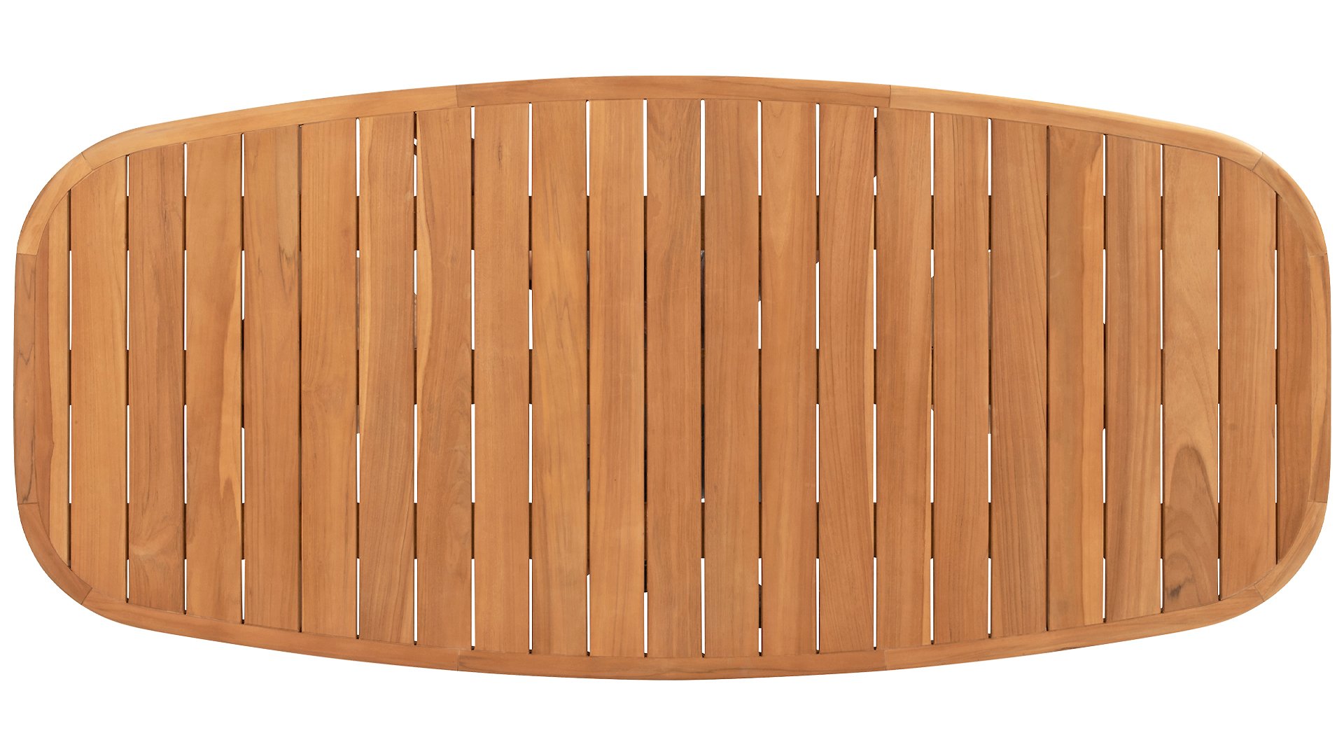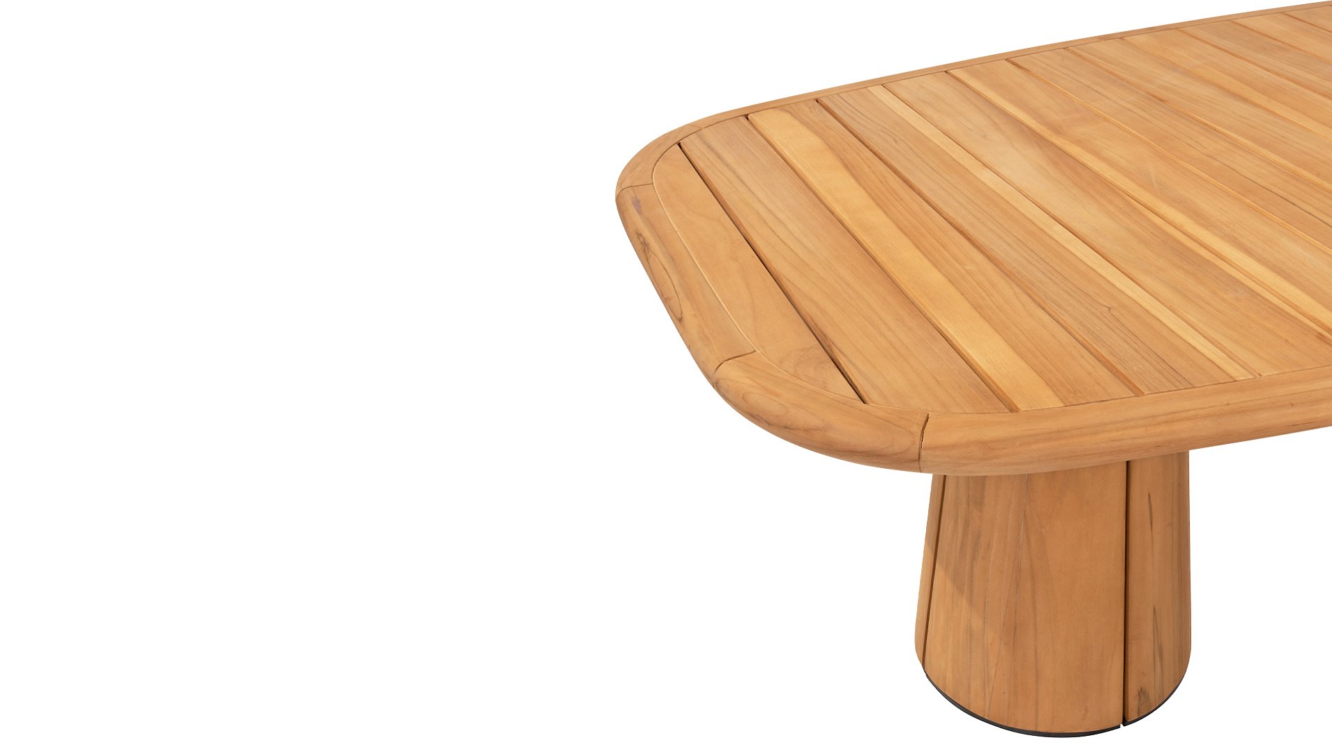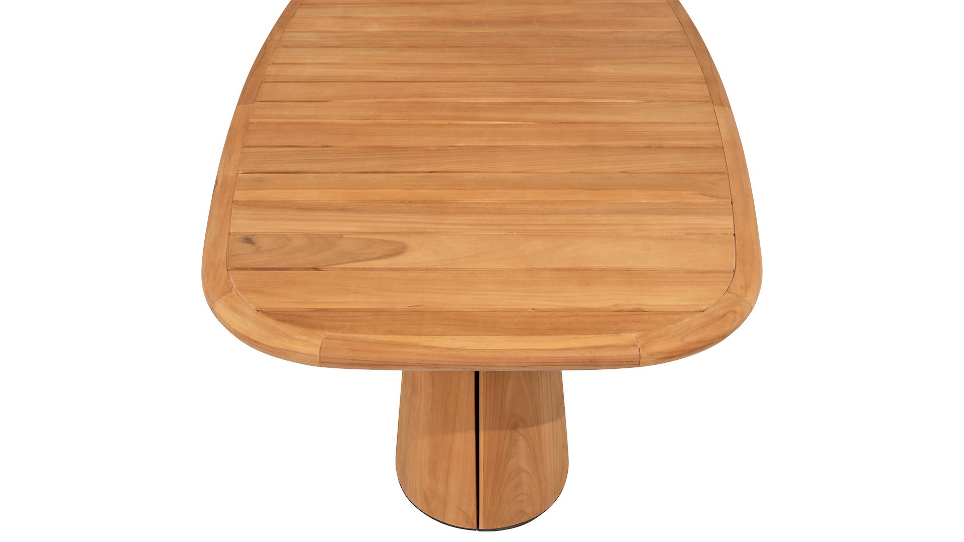 The Capri is a beautiful addition to any interior, entirely made of high-quality teak wood. The top has a false oval shape, giving it a playful yet elegant appearance. This unique shape provides more space for dining and conversations while adding a modern and organic feel to the space.