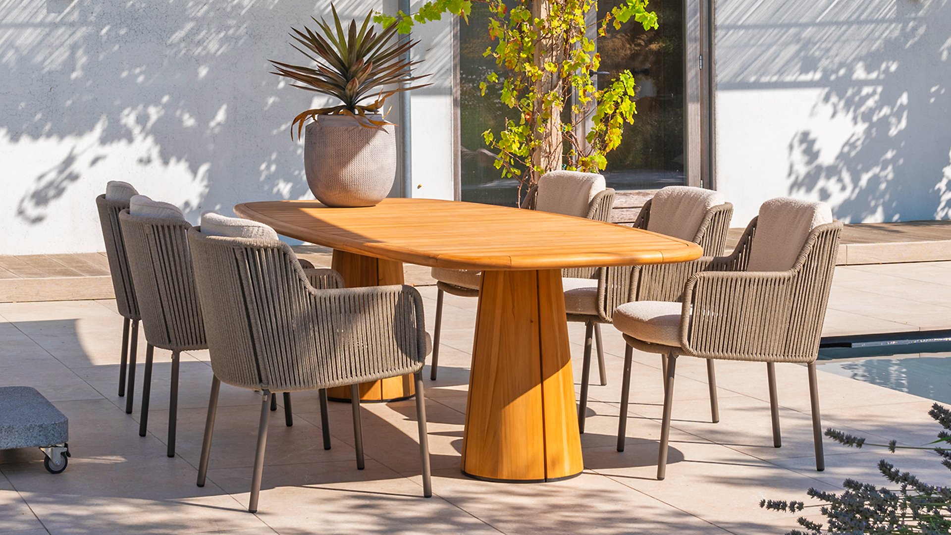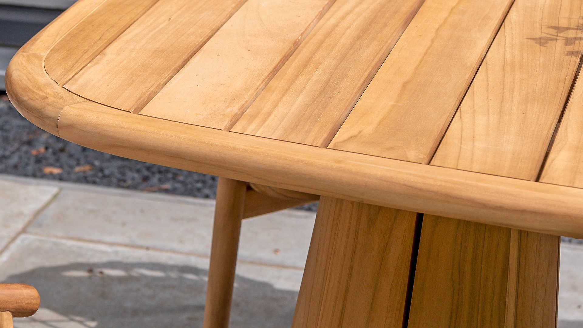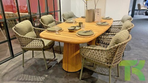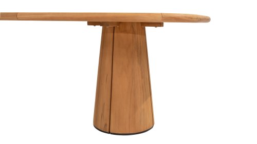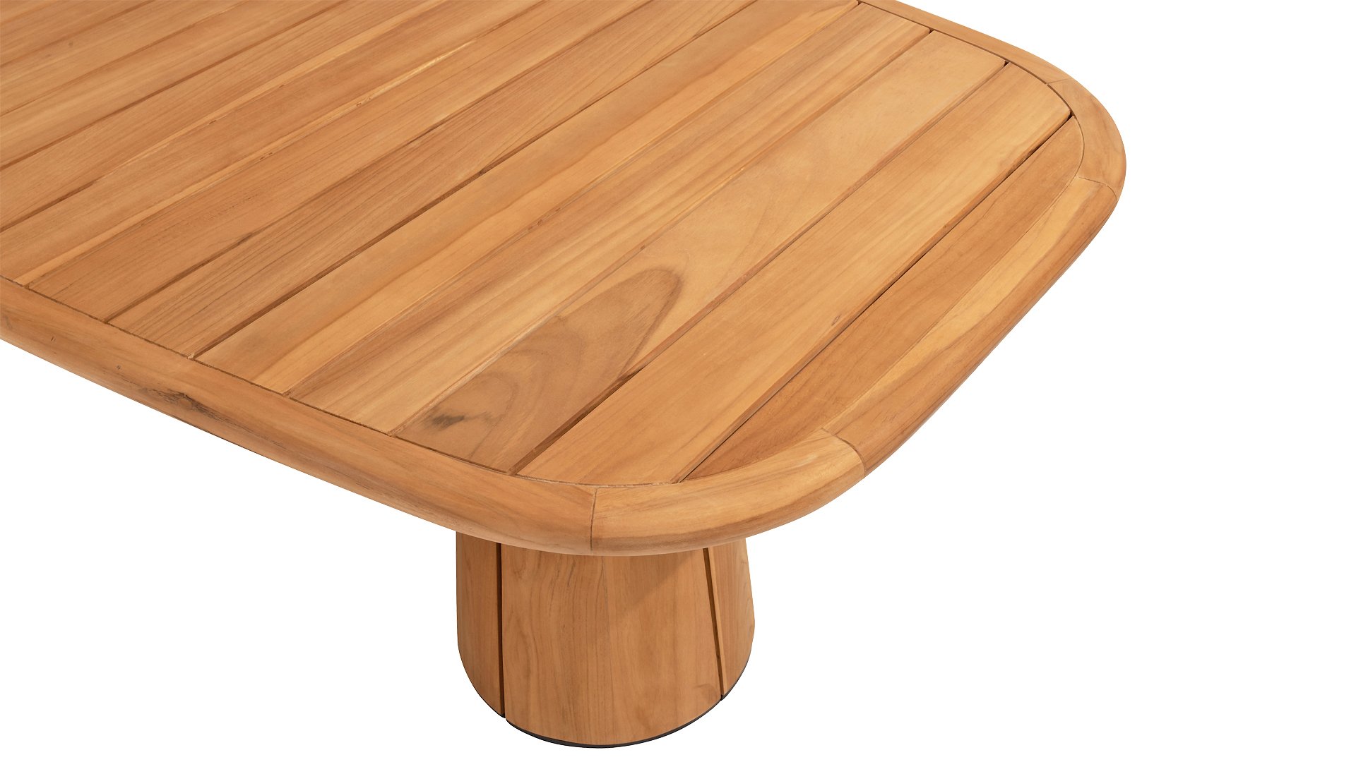 The Capri is a beautiful addition to any interior, entirely made of high-quality teak wood. The top has a false oval shape, giving it a playful yet elegant appearance. This unique shape provides more space for dining and conversations while adding a modern and organic feel to the space.