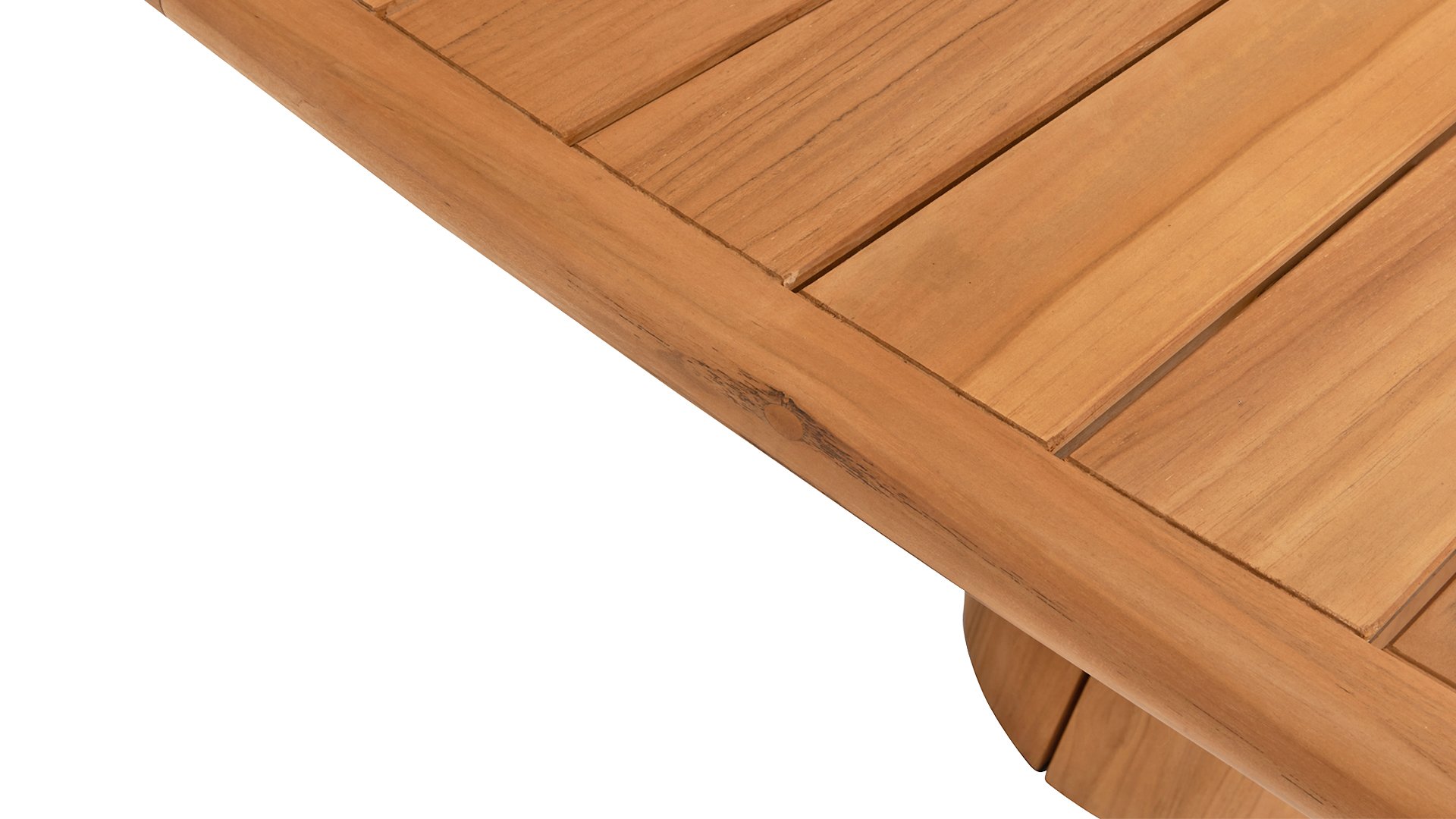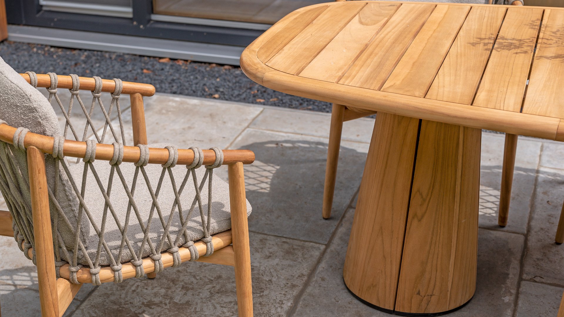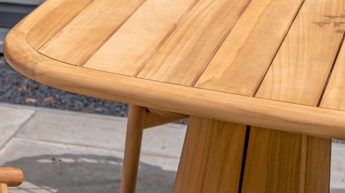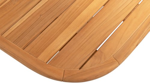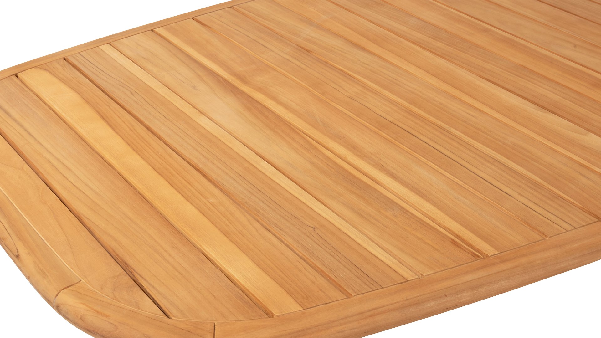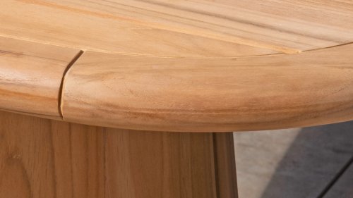 Teak is a natural product and particularly suitable for outdoor use. It is resistant to pests and mold and can withstand sun, rain, and snow. Over time, teak develops a silver-gray patina. Teak is a robust material and requires little maintenance. If you prefer the original color of your teak, you can easily prevent it from turning gray by regularly using our care product. You can also clean teak with green soap. We offer a warranty on all manufacturing and construction defects. This does not include the working of teak. When you choose teak, we expect you to appreciate these qualities. Hairline cracks that may develop, knots in the teak, and rough surfaces or irregular discoloration over time are not covered by our warranty. These characteristics give teak its unique character and appearance; they are part of its natural properties. Be careful with a flowerpot or vase on your teak garden table, as this can cause persistent rings or color variations. Imperfections are common; these imperfections are characteristic of this product. These irregularities can never give ground to a claim, warranty, or complaint. This is a signs ans signature of originality!