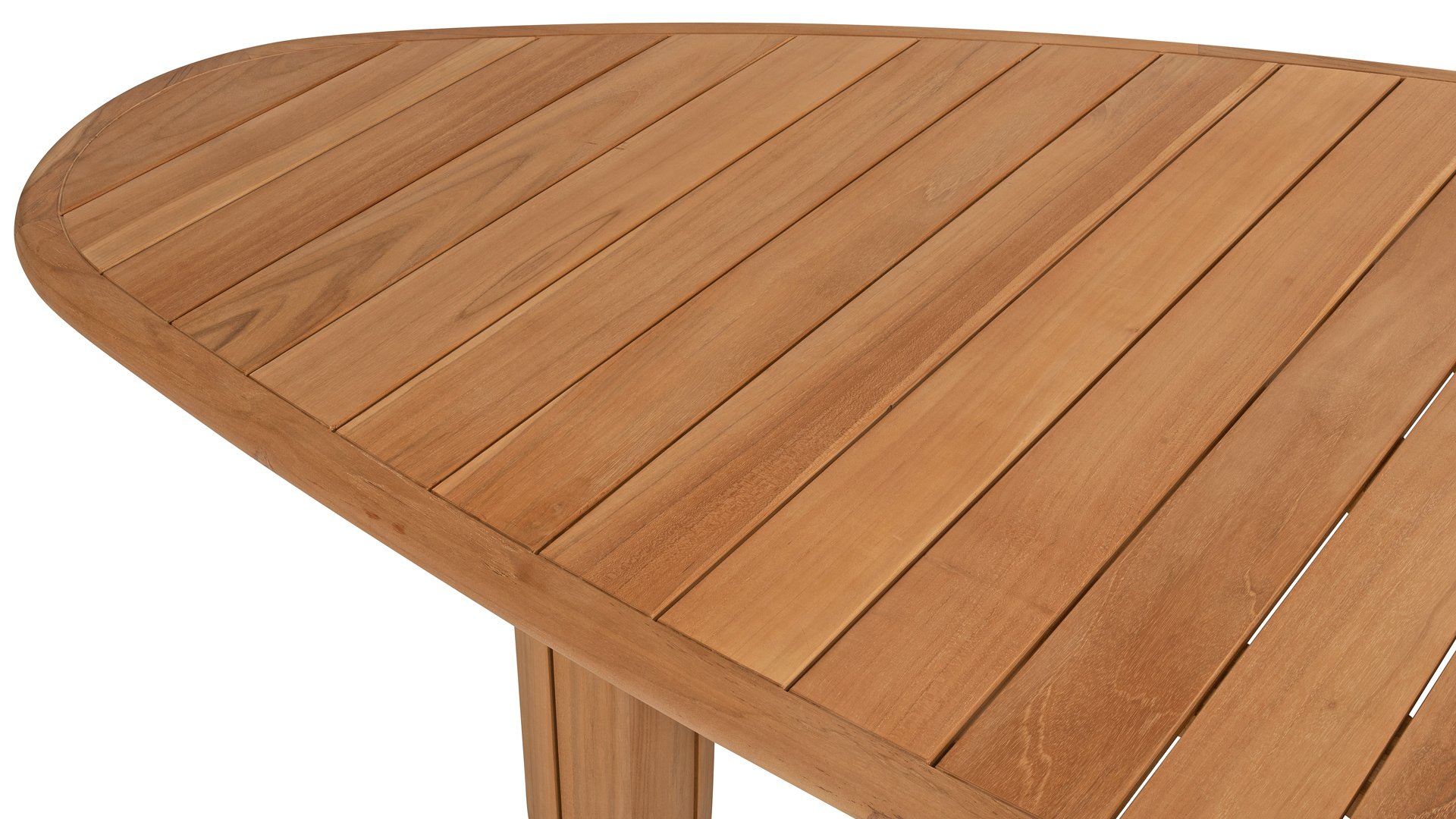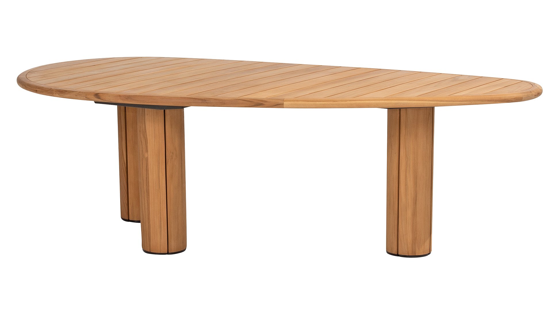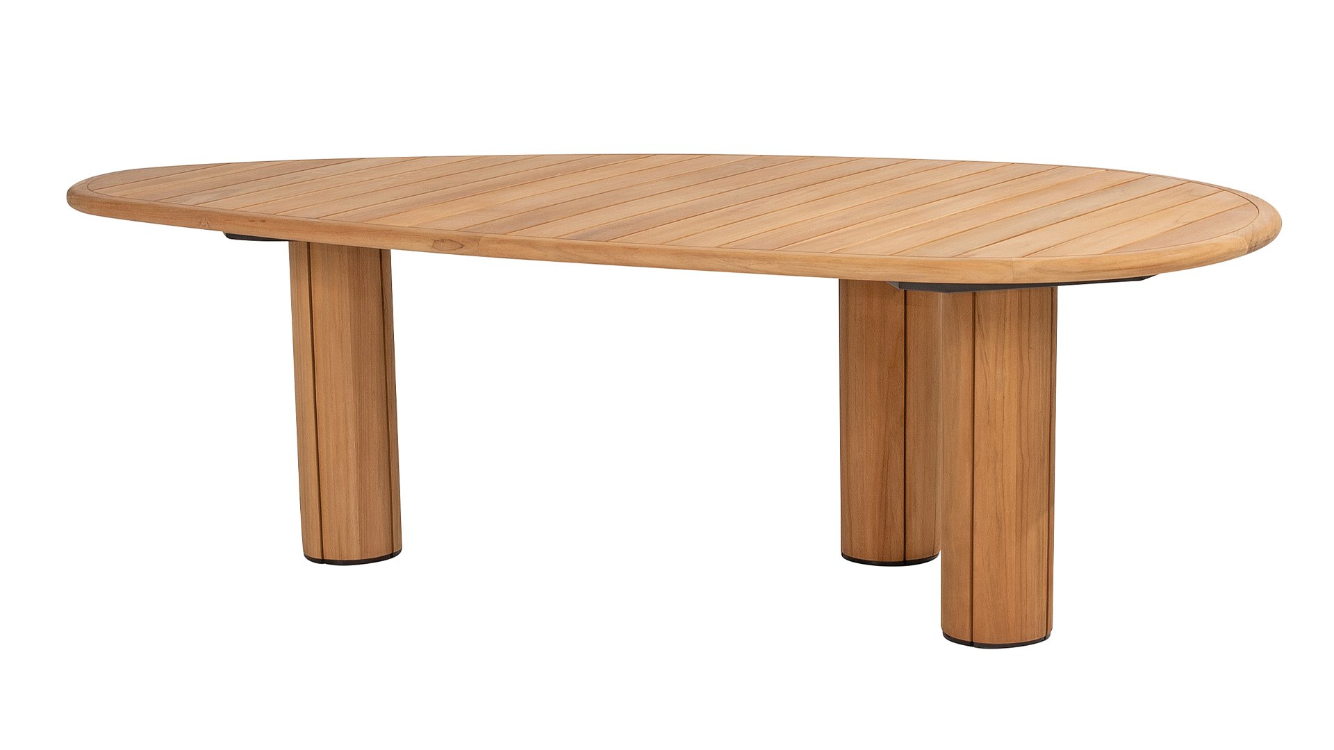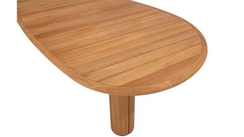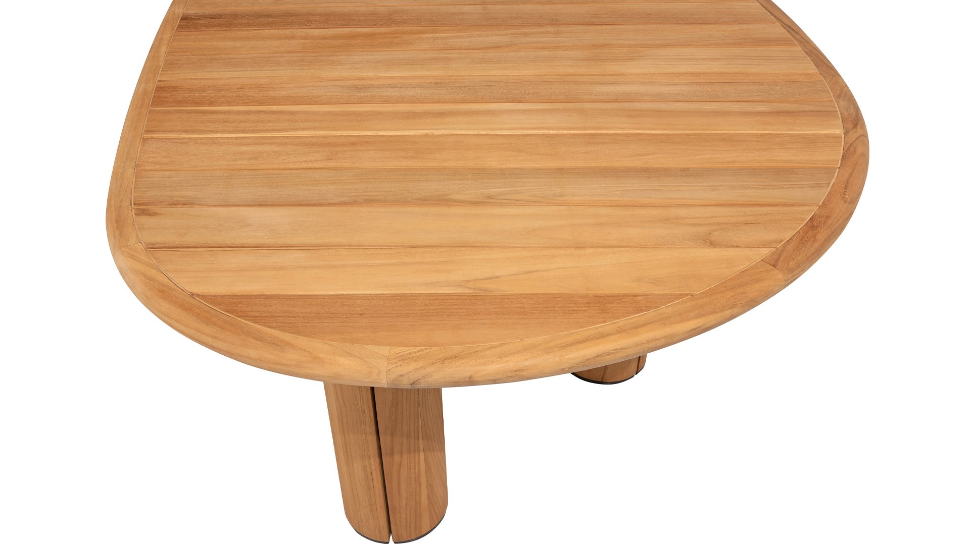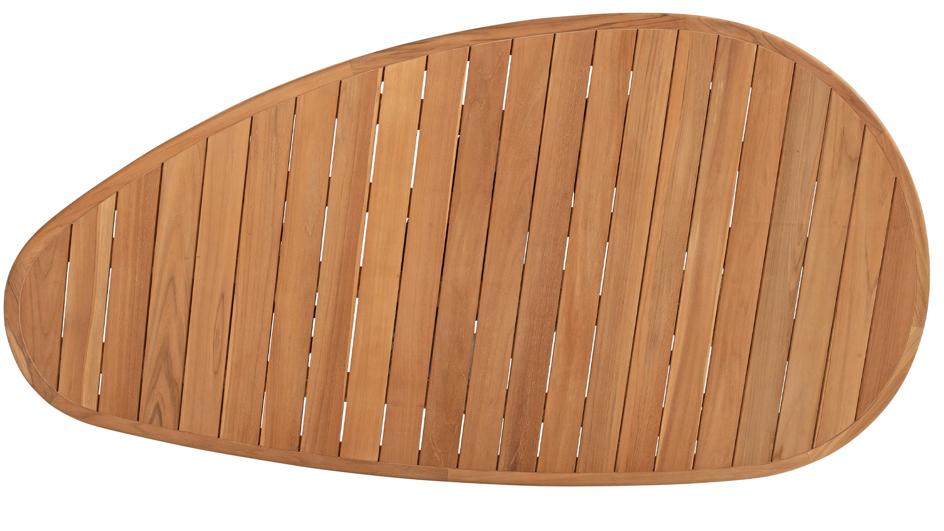 The Corsica Pebble is a beautiful addition to any exterior, completely made from high-quality teak wood. The top has a false oval shape, giving it a playful yet elegant appearance. This unique shape provides more space for dining and conversations while adding a modern and organic feel to the space.