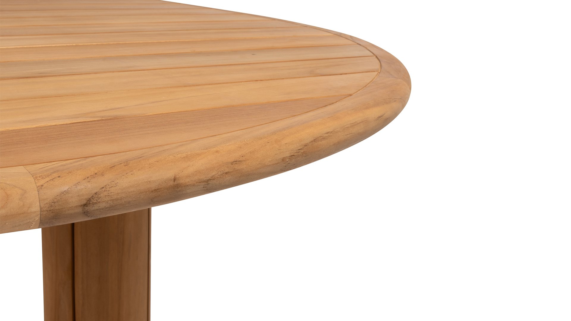 The round legs ensure stability and contribute to the sleek design of the table. The natural shades and the beautiful grain of the teak wood make each table unique, with a warm, inviting look. This table is perfect for social gatherings and everyday meals. A true eye-catcher that combines functionality and aesthetics. Also available in 160cm round. Taste 4SO Corsica table 160cm