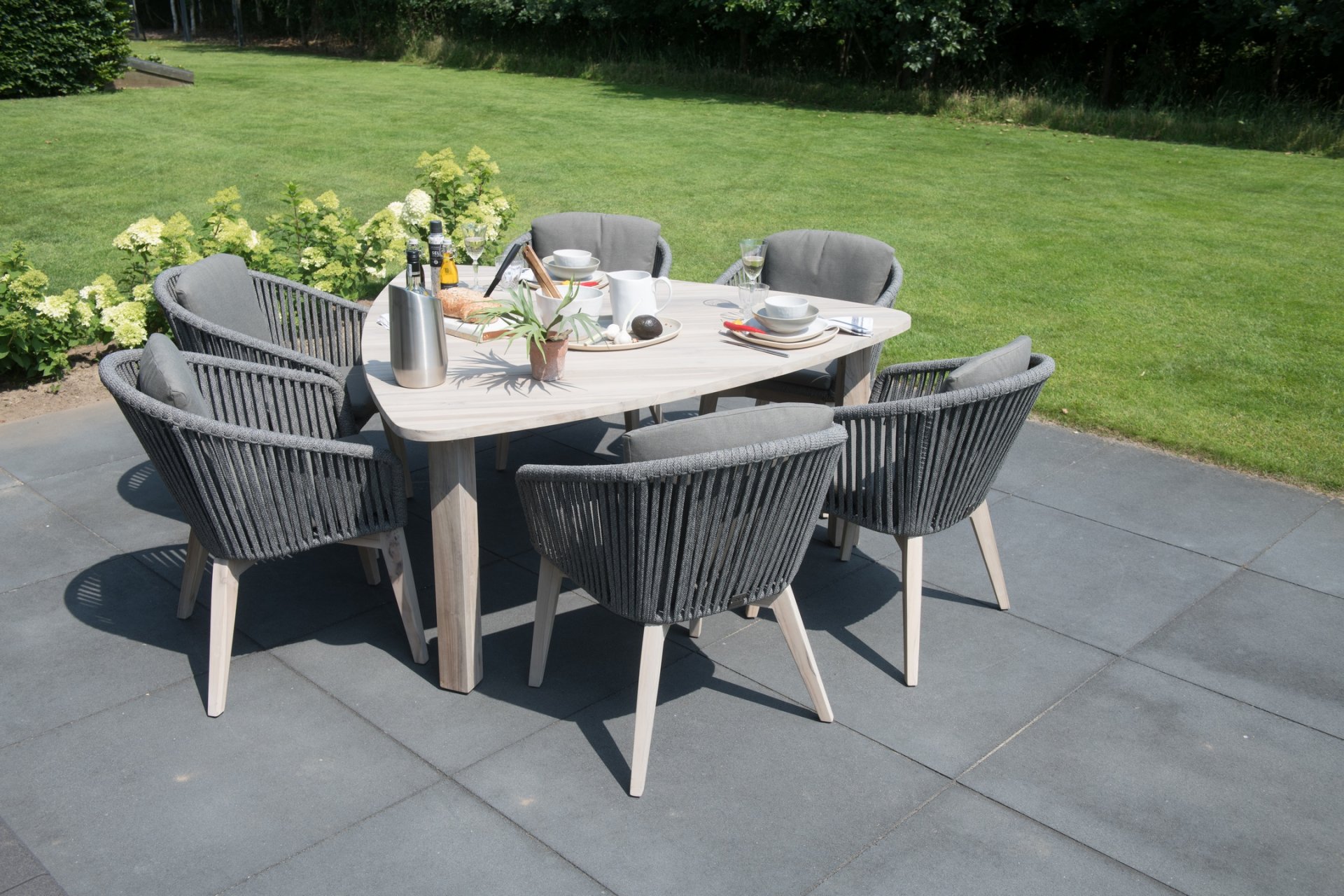 With its unique triangular shape, this Taste by 4Seasons Triangle table, featuring teak in the color Instant Grey, is a valuable addition to your garden or terrace. Also available with aluminum leg .