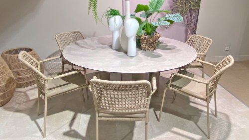 In the Taste by 4 Seasons Outdoor Donato series, there are several options available, as it is available as a dining table in the colors: Taste 4Seasons Donato Table Ø160cm Latte & Taste 4Seasons Donato Table Ø160cm Terre, allowing you to choose the perfect match for your interior. To pass the mayonnaise or milk to the person opposite you, simply add the: Taste 4Seasons Donato Lazy Susan to the whole setup. In addition, there is also a low dining variant available in the colors Latte and Terre, perfect for an informal and relaxed dining experience: Taste 4Seasons Donato Low Dining Table Ø160cm Latte, Taste 4Seasons Donato Low Dining Table Ø160cm Terre. What else?